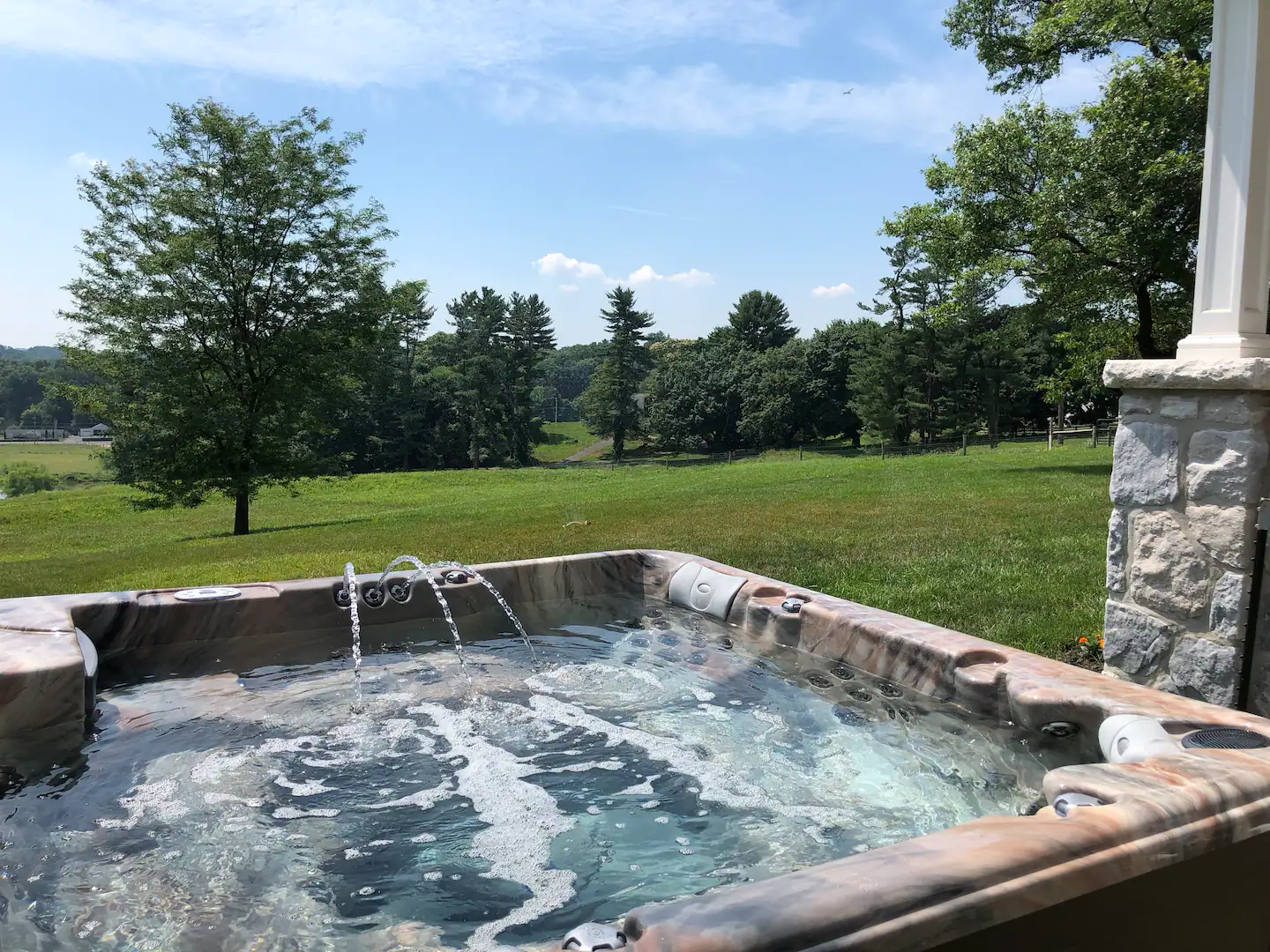 Two gas fireplaces create both heat and ambiance seasonally. Year-round, we have a 7-person 115-jet hot tub.