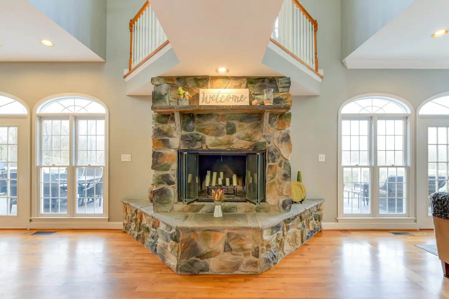 Experience the quiet country life without parting from the comforts of technology in this rental property in Virginia. This farmhouse is a Google Smart Home to keep your stay as convenient and comfortable as possible. It also features a pool and a Tiki Hut for those lazy afternoons along the River. With direct access to the Potomac River, you can enjoy fresh air, the sight of local wildlife, and majestic greenery; this luxurious country home is indeed a patch of heaven on Earth where you can relax and enjoy with your whole family, away from the stresses of the city life.