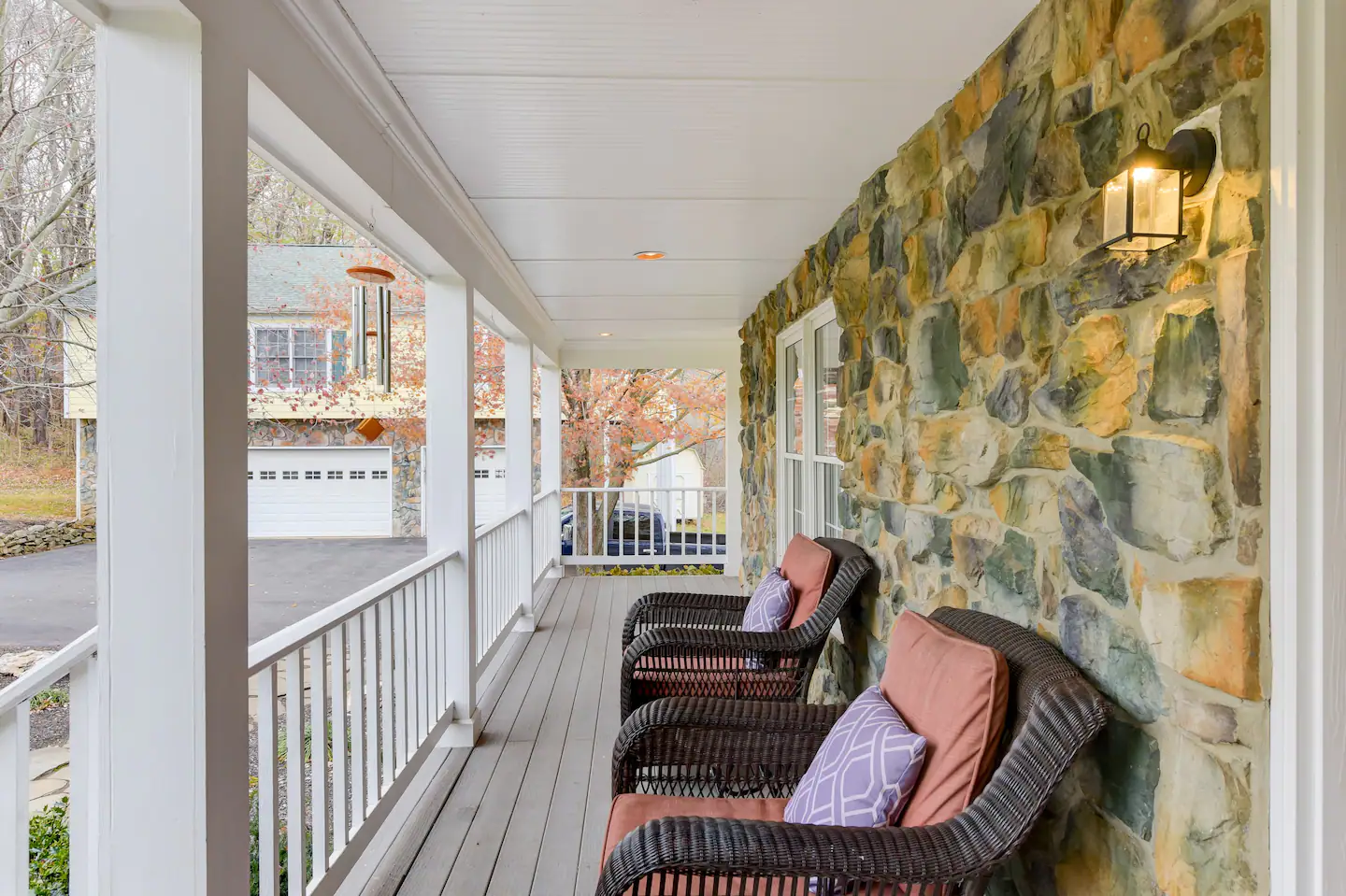 Our farmhouse was built in 1793 and renovated early in the 21st century. It offers all the modern amenities but in a historical setting. The house has 5 bedrooms, including a master suite, and ample common spaces, including a huge kitchen with a six burner stove and two ovens, an enclosed porch perfect for meals on a summer evening, a pool, a large pond, and 10+ acres of well-maintained park. Please note our house sits close to a highway. There is plenty of greenery to maintain privacy, but traffic is sometimes audible.
