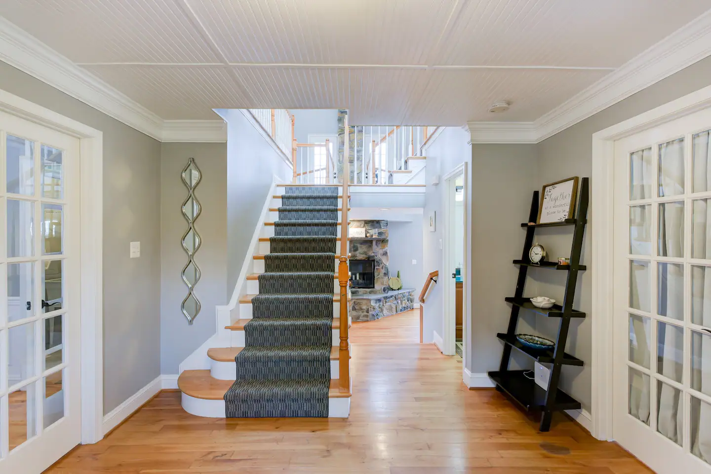 If the majestic views and the sense of calm that this property in Crozet, Virginia, don’t leave you in awe, the traditional 1700s estate home surely will! It is nestled in the heart of a wine country and just minutes away from breweries and wineries. It offers spacious rooms, modern amenities for your convenience, access to a private trail network, and a private deck where you can enjoy peace and quiet.