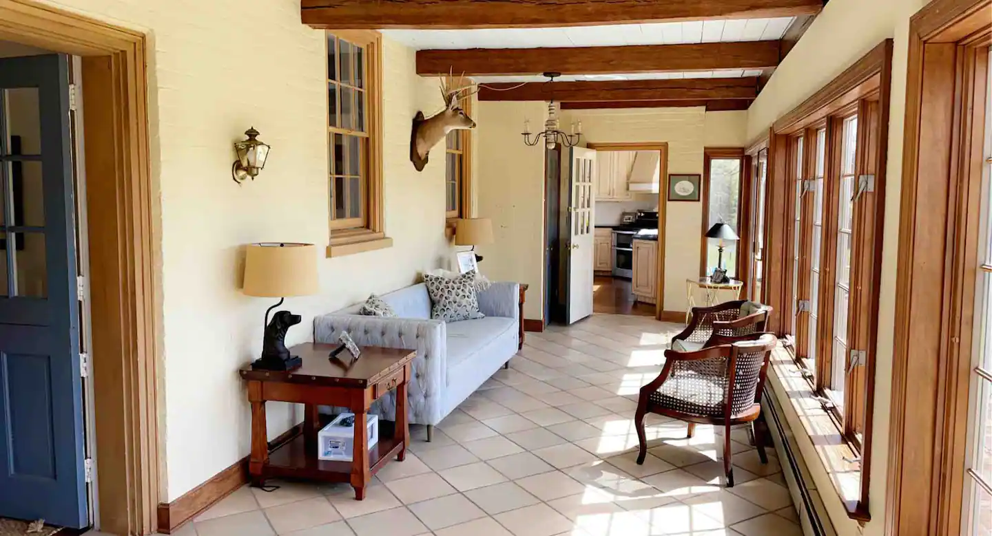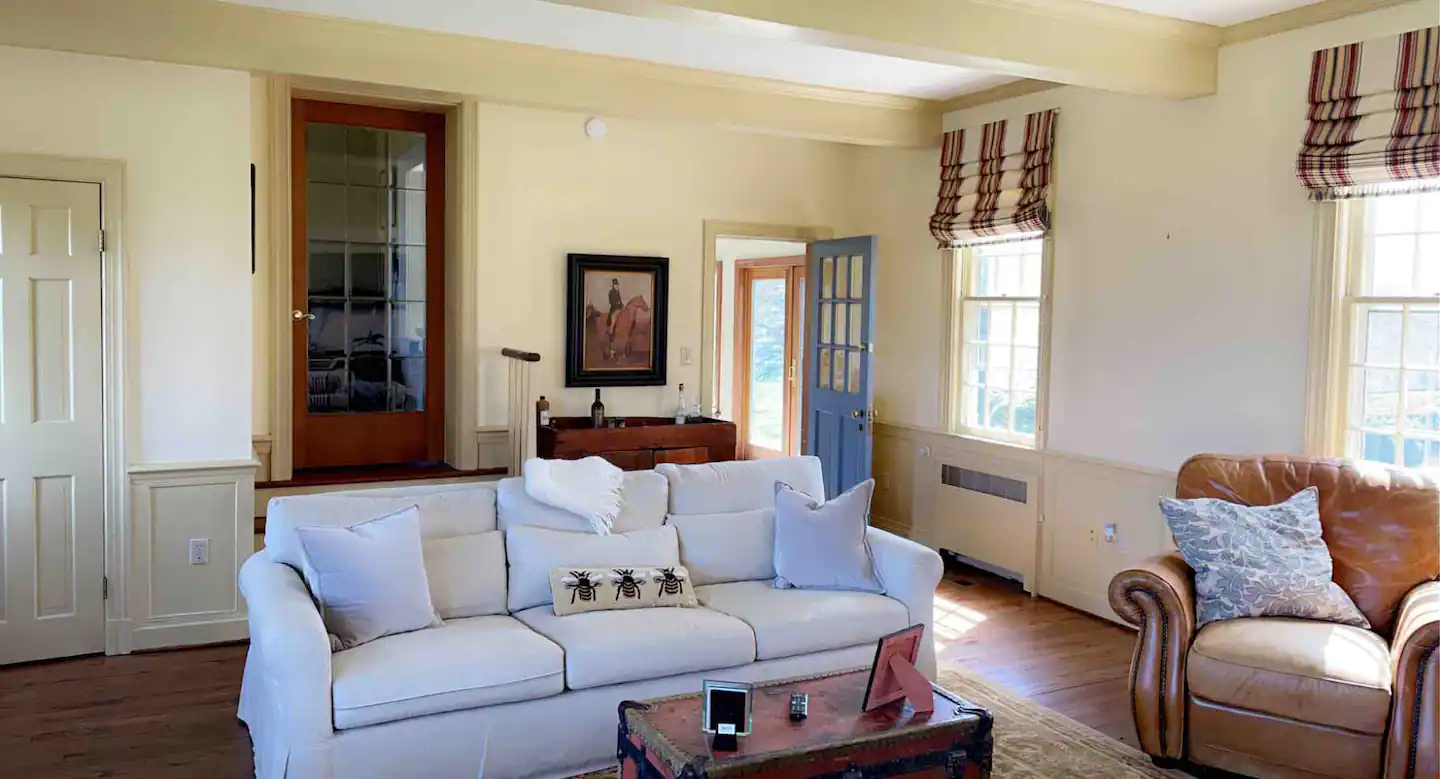Transport yourself back in time with this more than 200-year-old farmhouse in Connecticut! But wait, you don’t need to worry about your convenience in this rental property because it has been renovated early in the 21st century to cater to your modern needs but still has that rustic touch and historic setting. This farmhouse features 5 spacious rooms, intricate 18th-century home decor, a pool, and access to a 10-acre well-maintained park.