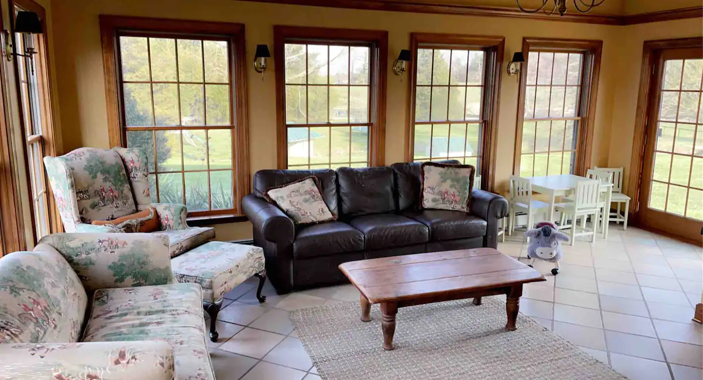 One of the most beautiful houses in Lancaster Country, this rental property will astound you with its majestic meadows, meticulously-cared for the mansion, luxurious amenities, and high-end finishings, like gorgeous chandeliers, refinished hardwood, and a master bedroom with marble floor entertaining space. Whether you’re staying here for a retreat with friends, a family vacation, or just want to unwind and relax, you’ll surely feel no less than royalty!