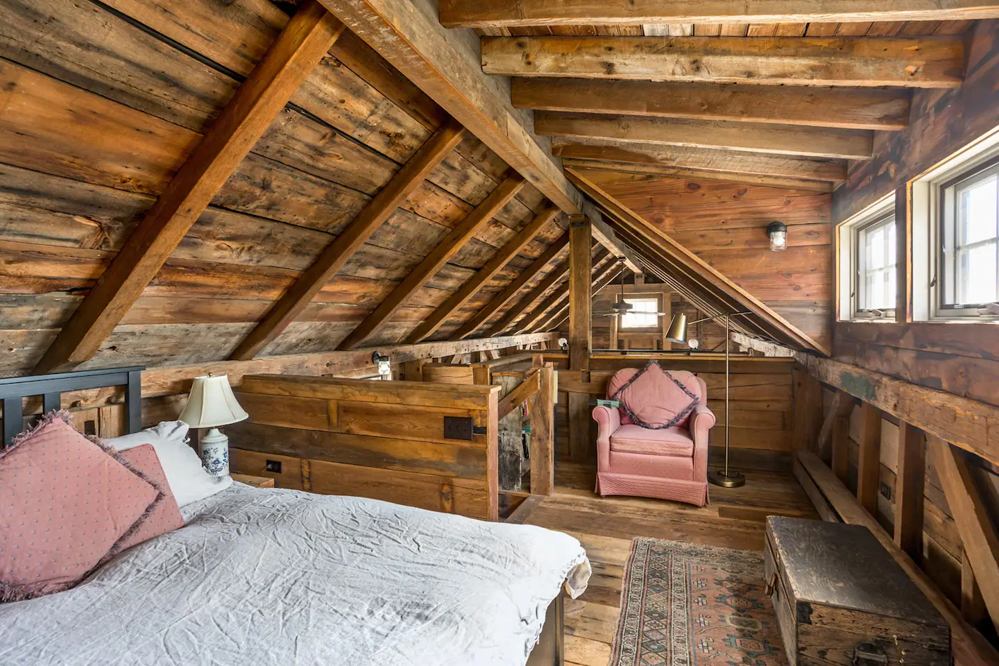 The house is filled with lovely 18th-century details – wide-timbered wood floors, exposed beams, tiny nooks – but it’s also roomy and comfortable. There are five bedrooms (one in the attic) and many common spaces – a living room, sitting room, open kitchen/dining area with a functional fireplace, enclosed porch, home studio, and large patio. The house sits on a sixteen-acre plot, and much of that land is ready to be explored. There’s also a pool next to our historic barn. The house sleeps ten. We recently installed solar panels on the barn because we’re committed to making Sweetbrier more sustainable.