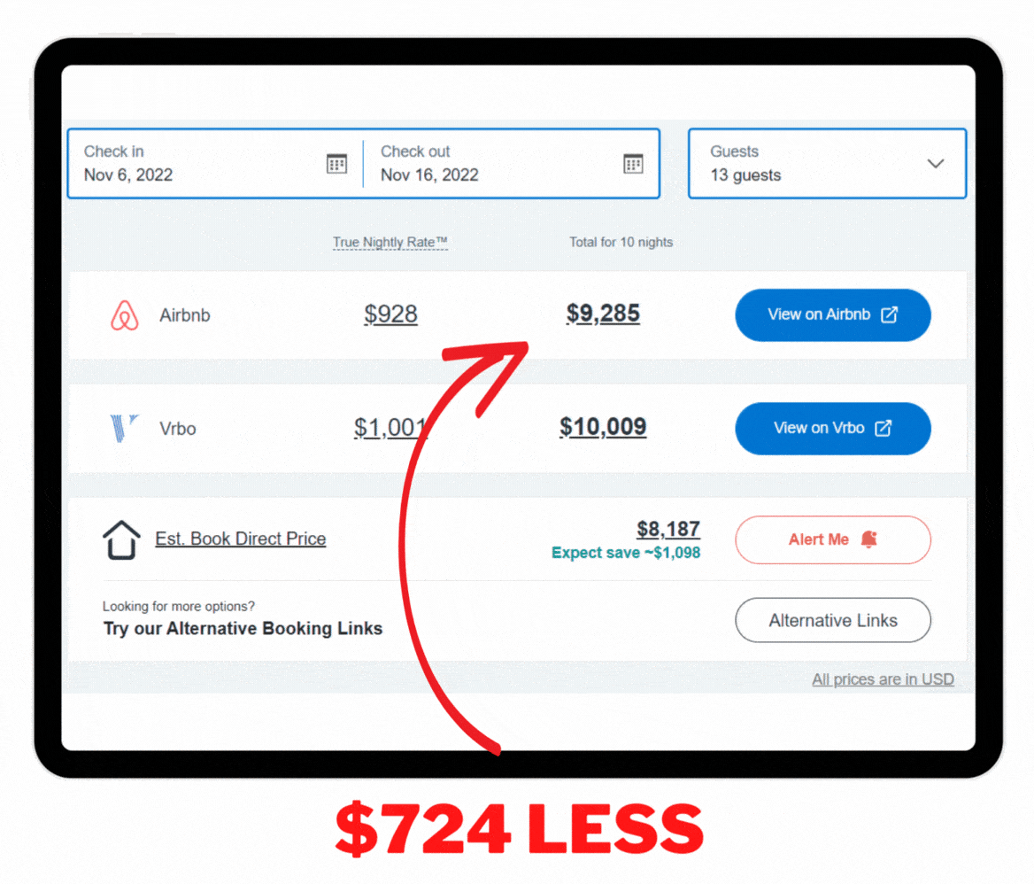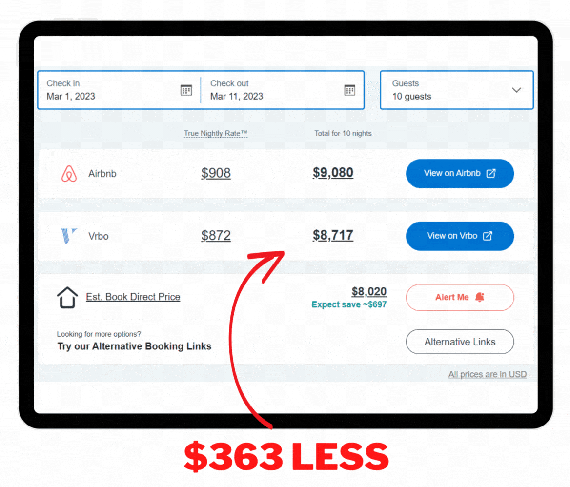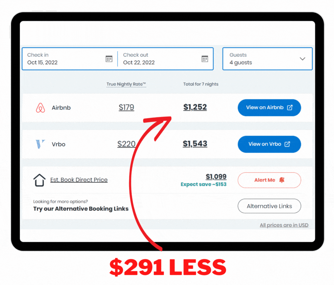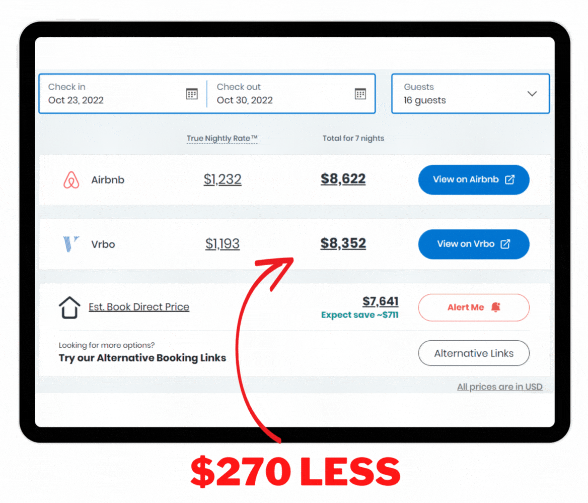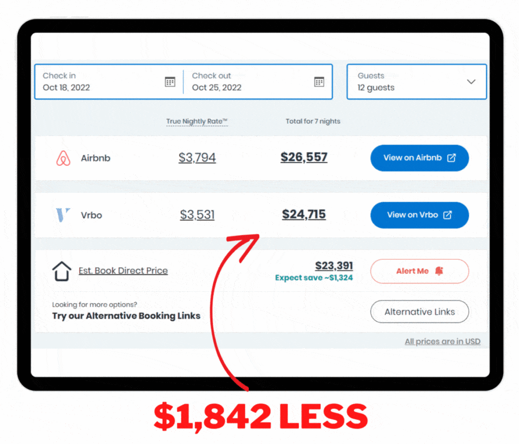 Let’s say you have a property in mind that’s available on Airbnb; you can check if you can rent it on other rental sites like VRBO or Booking (.com) or even by direct booking. Just copy the link to that particular property on Airbnb and paste it into the search bar on the Hichee website. Wait for a few secs, and you can now compare it and rent it for a lower price!
