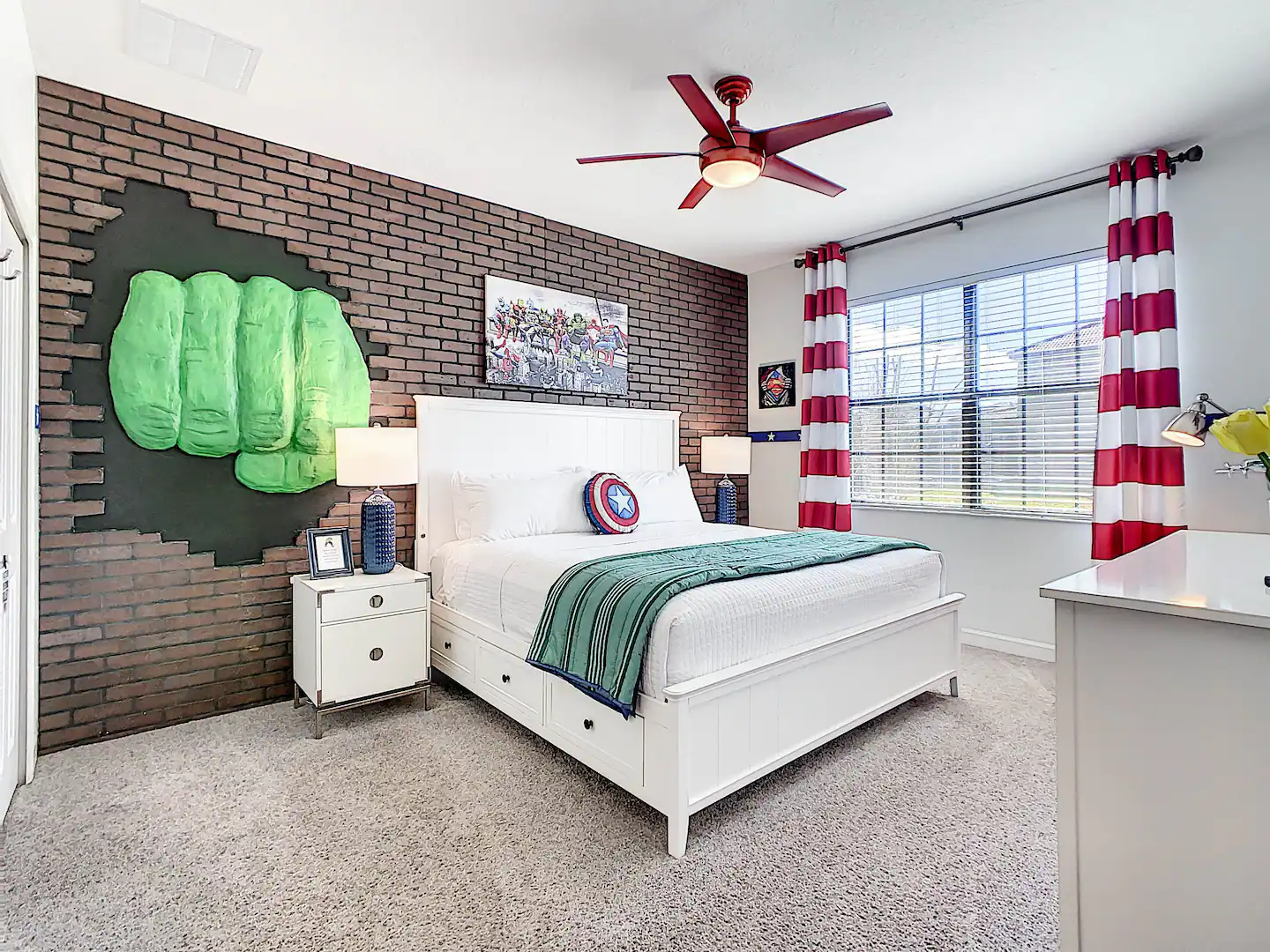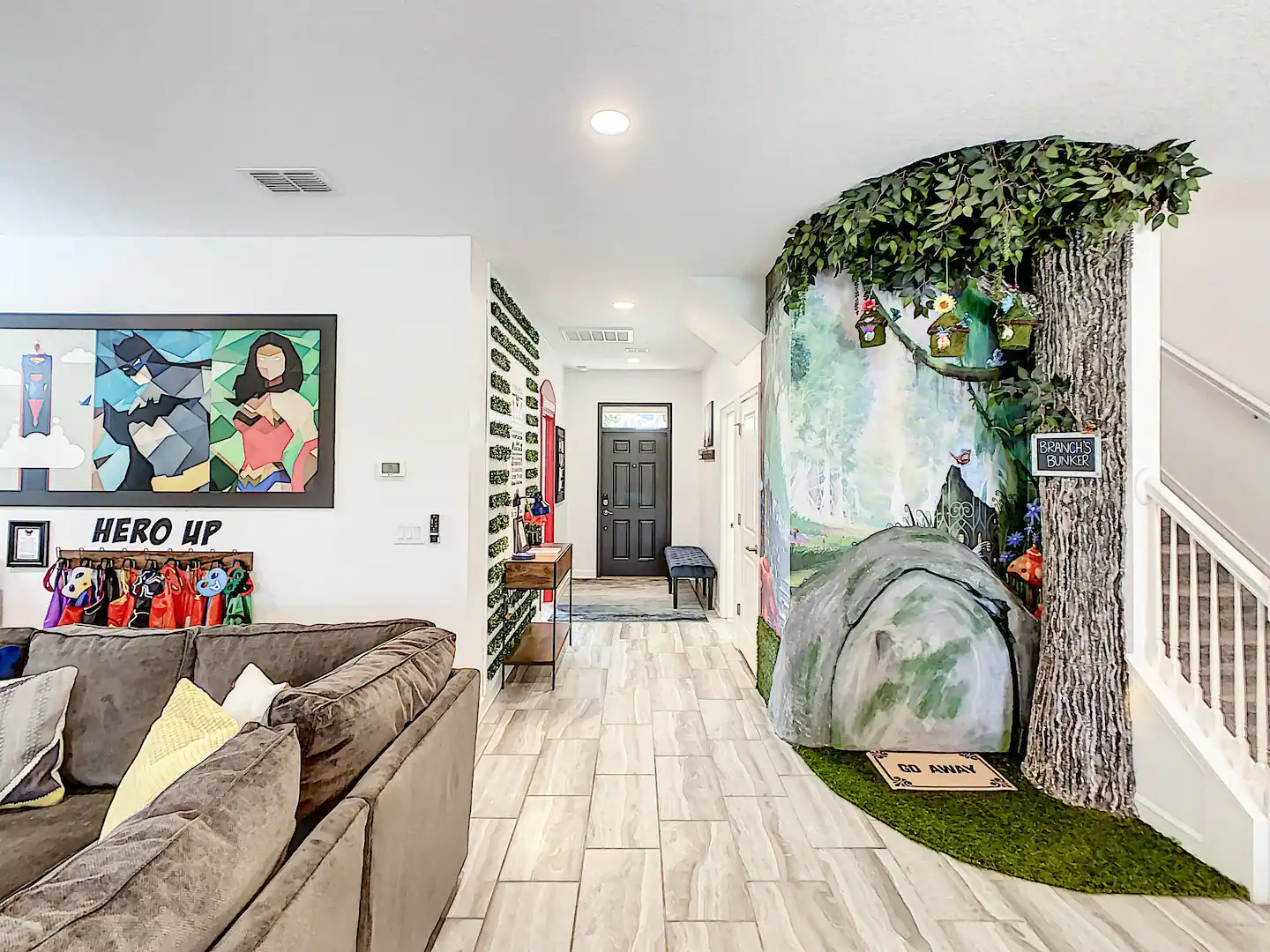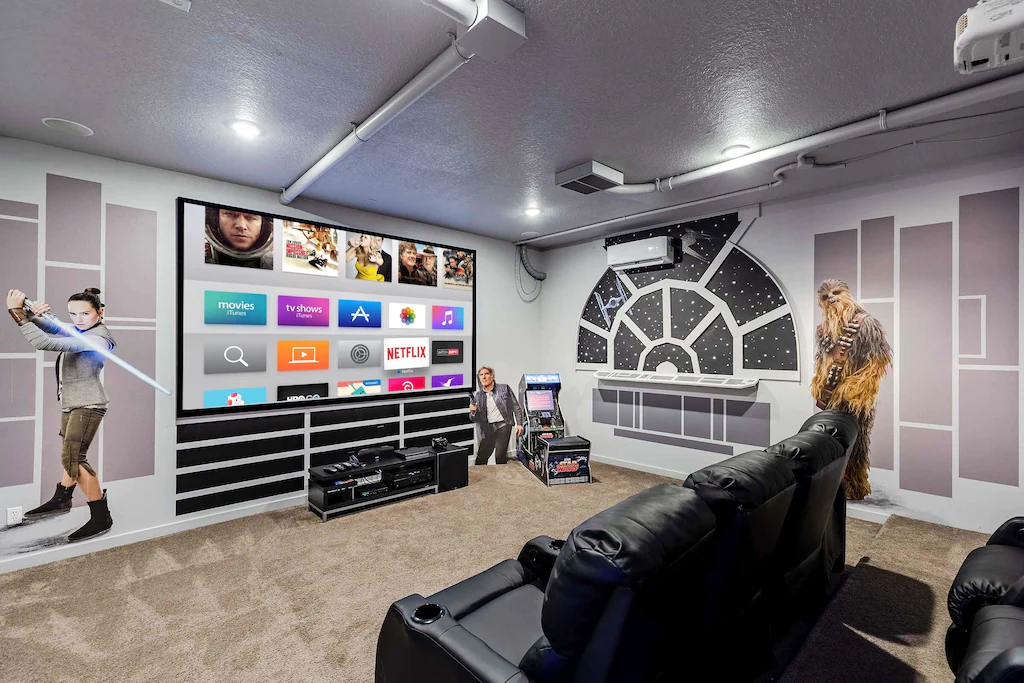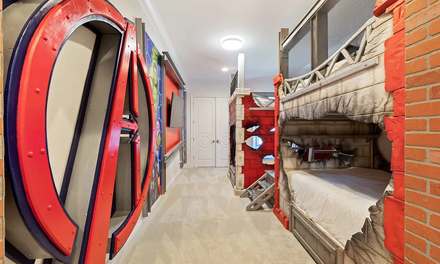Maybe you have kids who are still into Disney. Maybe you have kids who are into Star Wars and The Avengers. Maybe you already have a terrible headache because you can’t decide whether to stay in a Disney or Avengers-themed room. Well, this rental property has it all. You’re welcome! Aside from having the best of both worlds, this one-of-a-kind home has a wonderful indoor playroom, an equipped kitchen, a home theater system, and a Star Wars game room! The kids can have their fun while you relax in a spacious superhero bedroom because you’re a Supermom/Superdad—and you deserve it!