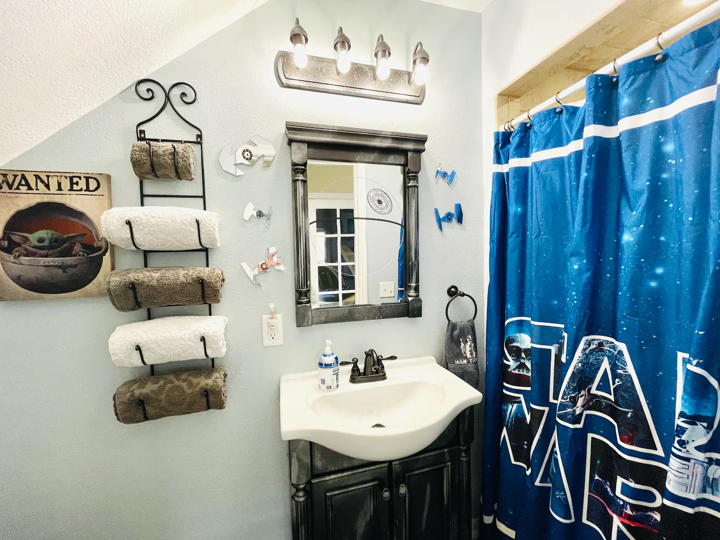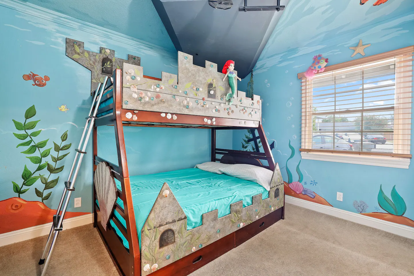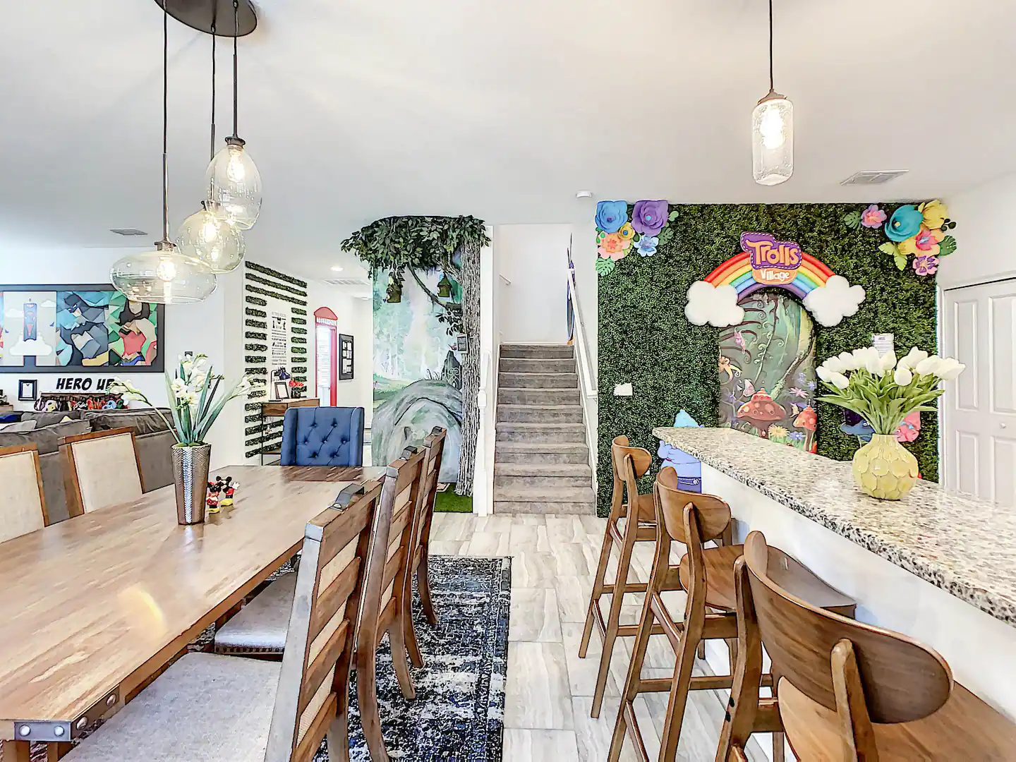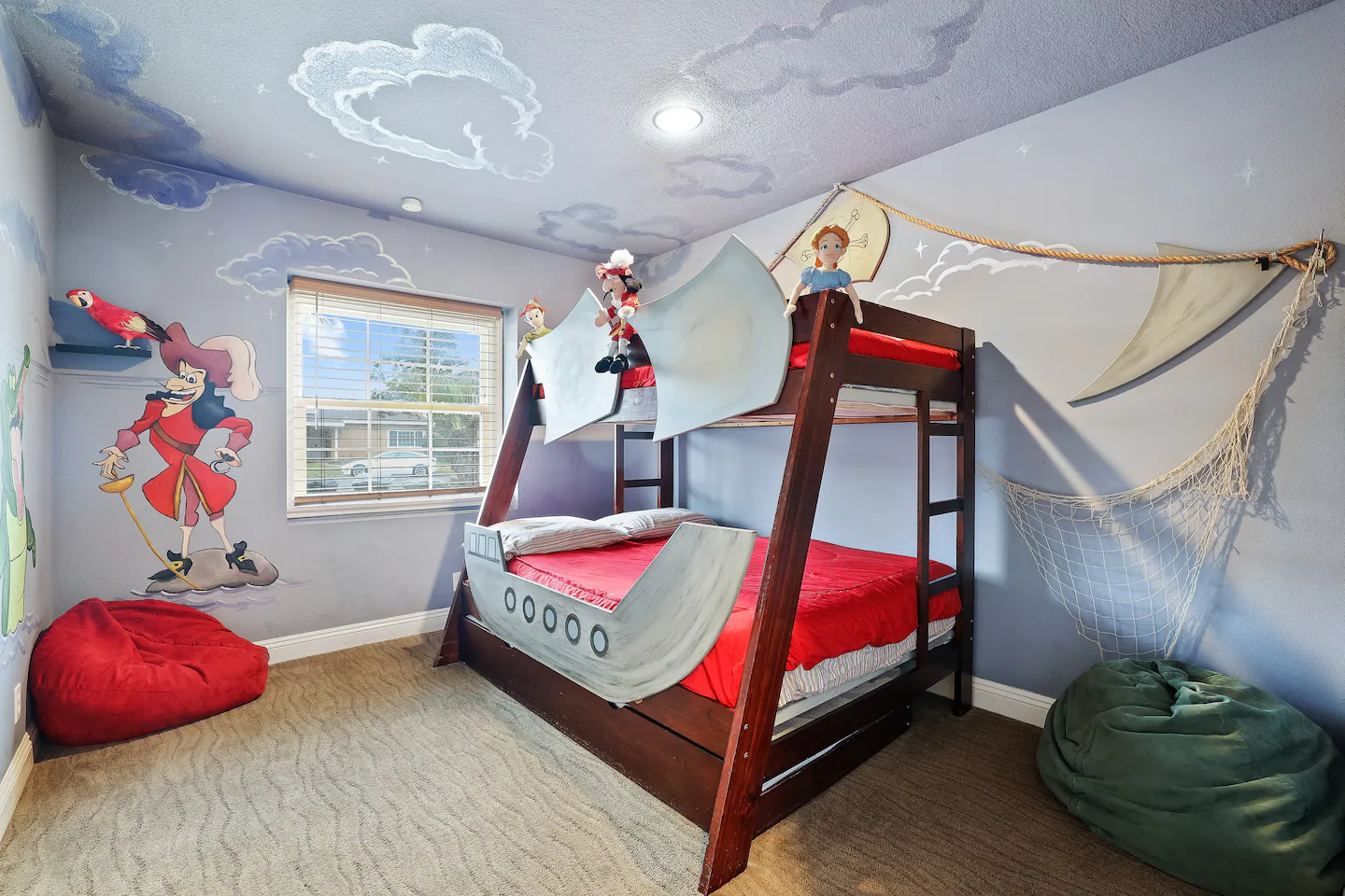 Maybe you have kids who are still into Disney. Maybe you have kids who are into Star Wars and The Avengers. Maybe you already have a terrible headache because you can’t decide whether to stay in a Disney or Avengers-themed room. Well, this rental property has it all. You’re welcome! Aside from having the best of both worlds, this one-of-a-kind home has a wonderful indoor playroom, an equipped kitchen, a home theater system, and a Star Wars game room! The kids can have their fun while you relax in a spacious superhero bedroom because you’re a Supermom/Superdad—and you deserve it!