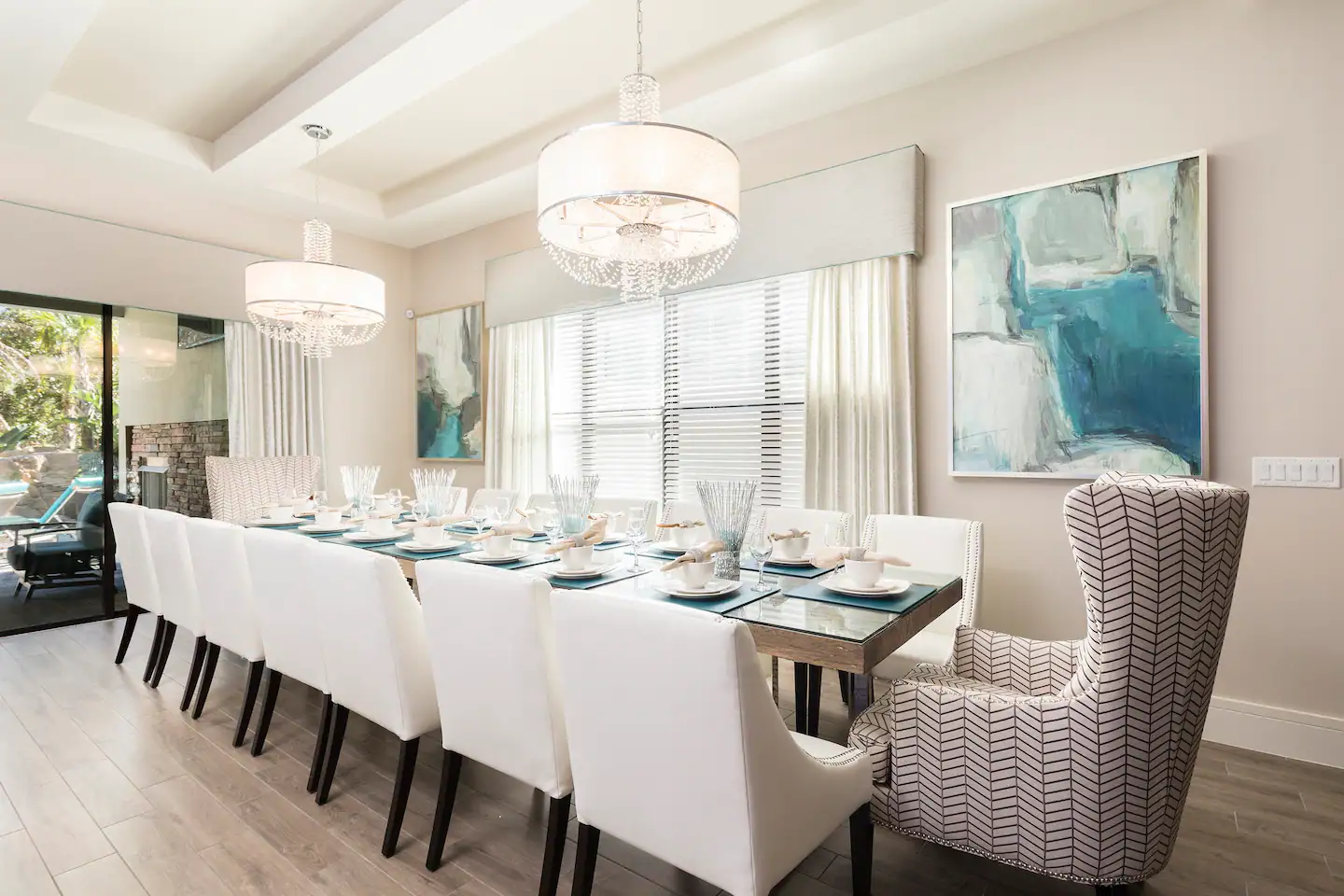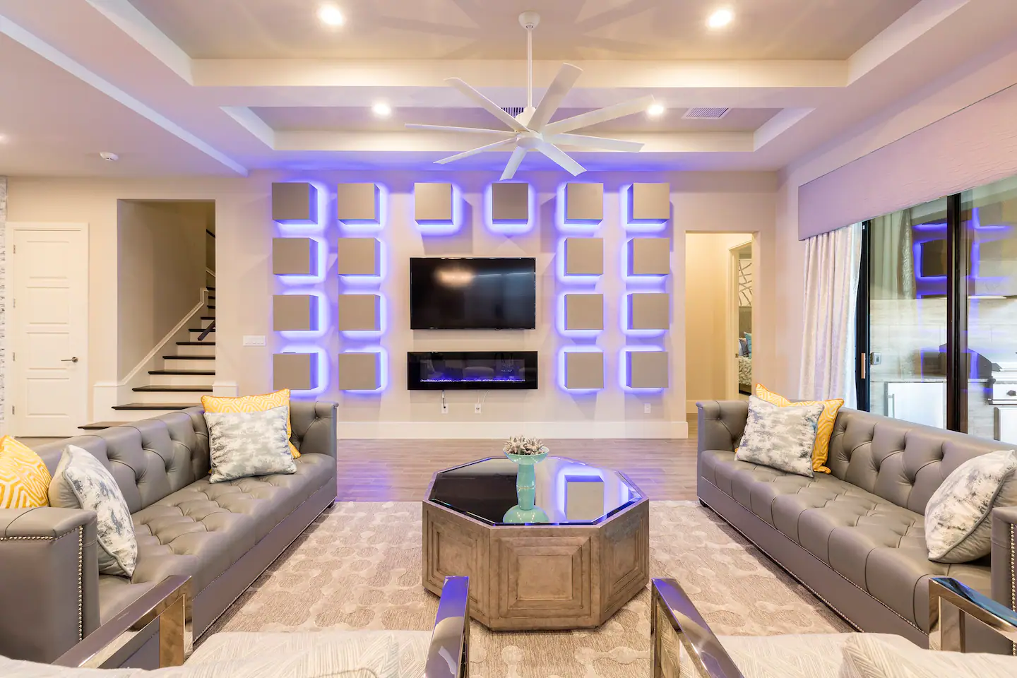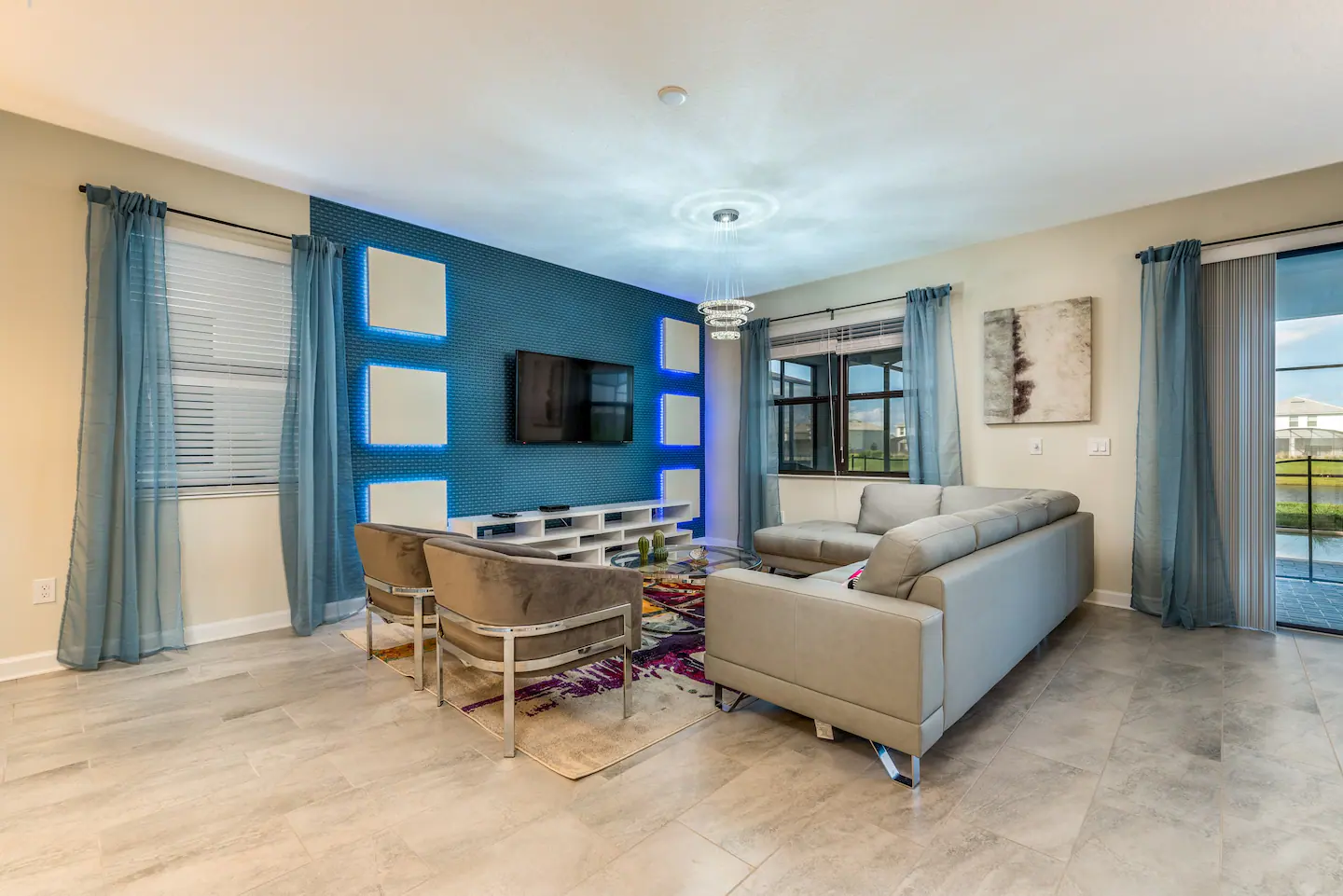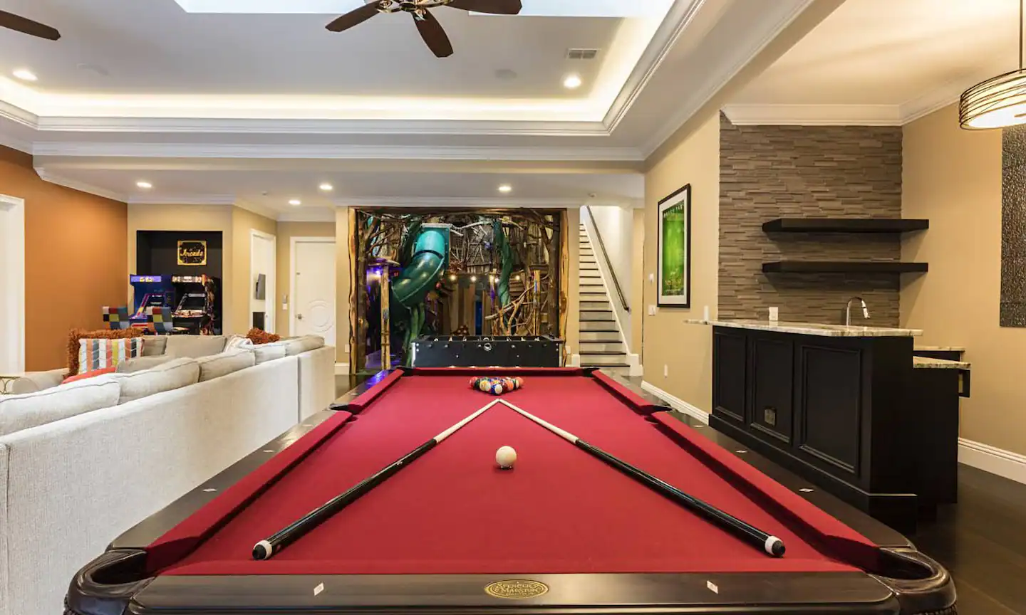 Surely to make your jaw drop with a huge Wow, this rental property in Orlando is professionally decorated with high-end amenities and luxurious furnishings. No corners were cut to ensure you have a stellar stay and loads of fun! It offers an electrifying game room, themed bedrooms, a private pool, and a fantastic home theater system for the entire family! It even has a fully equipped workspace for Mom and Dad and remote school kids.