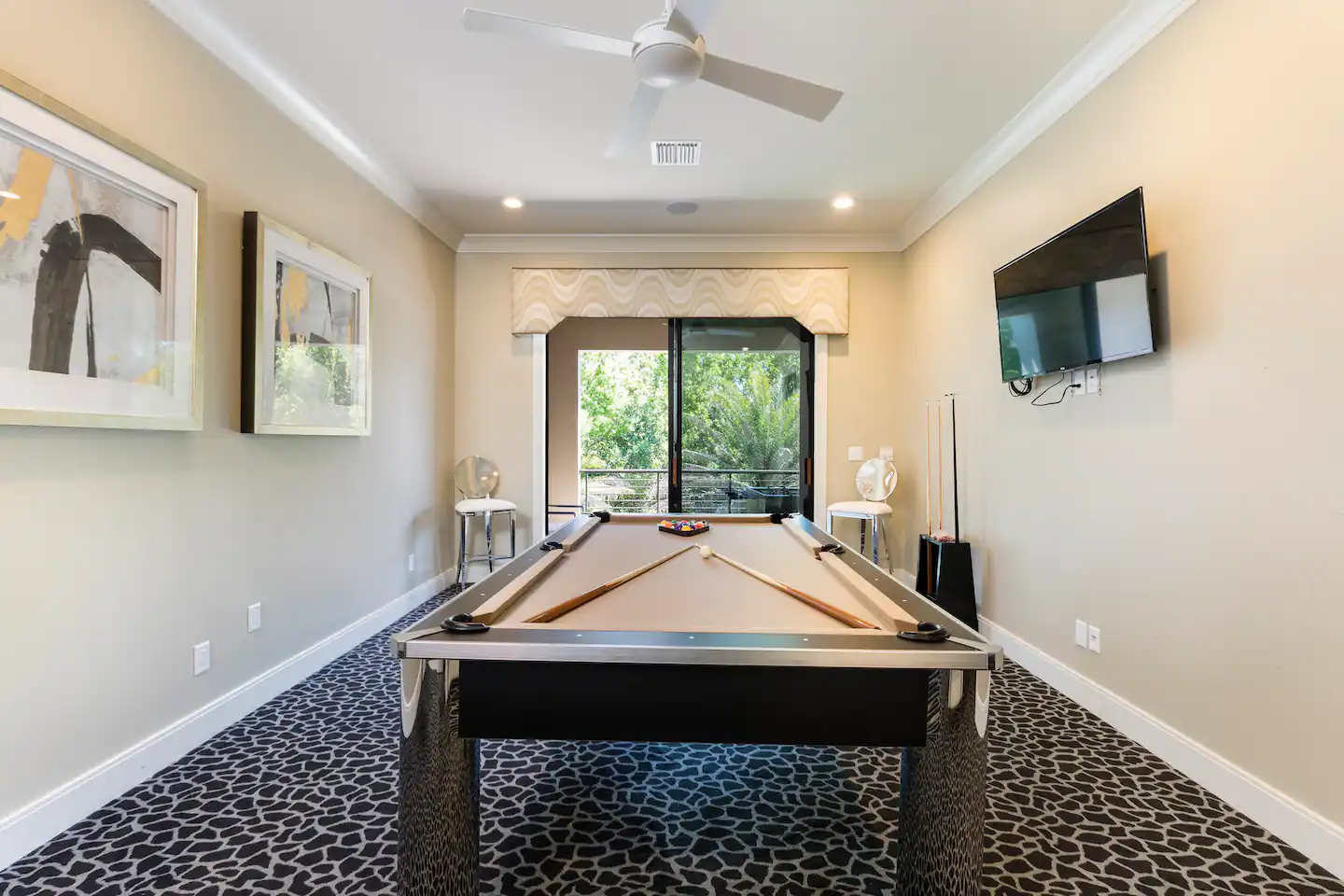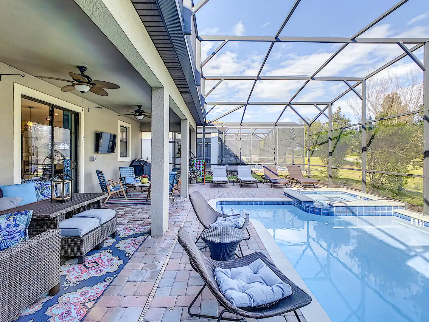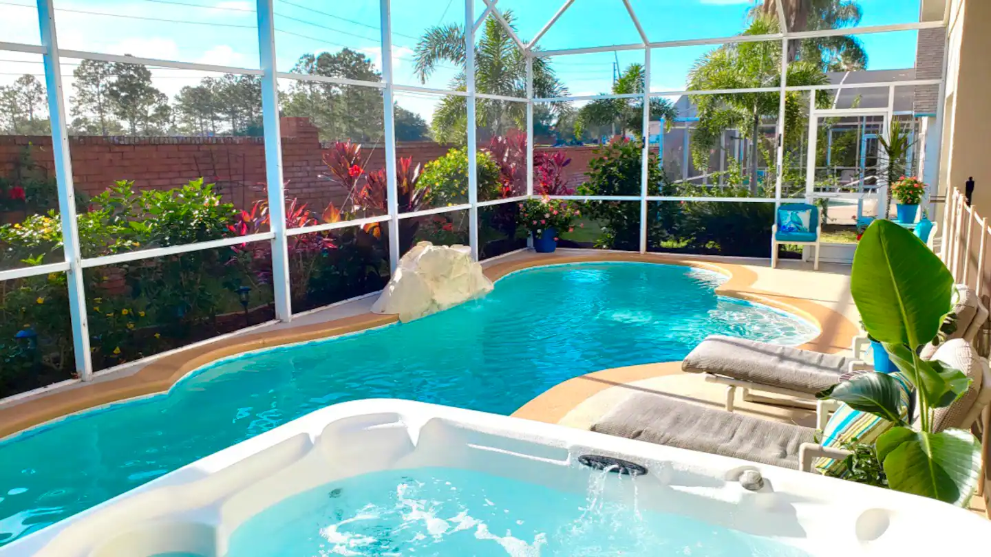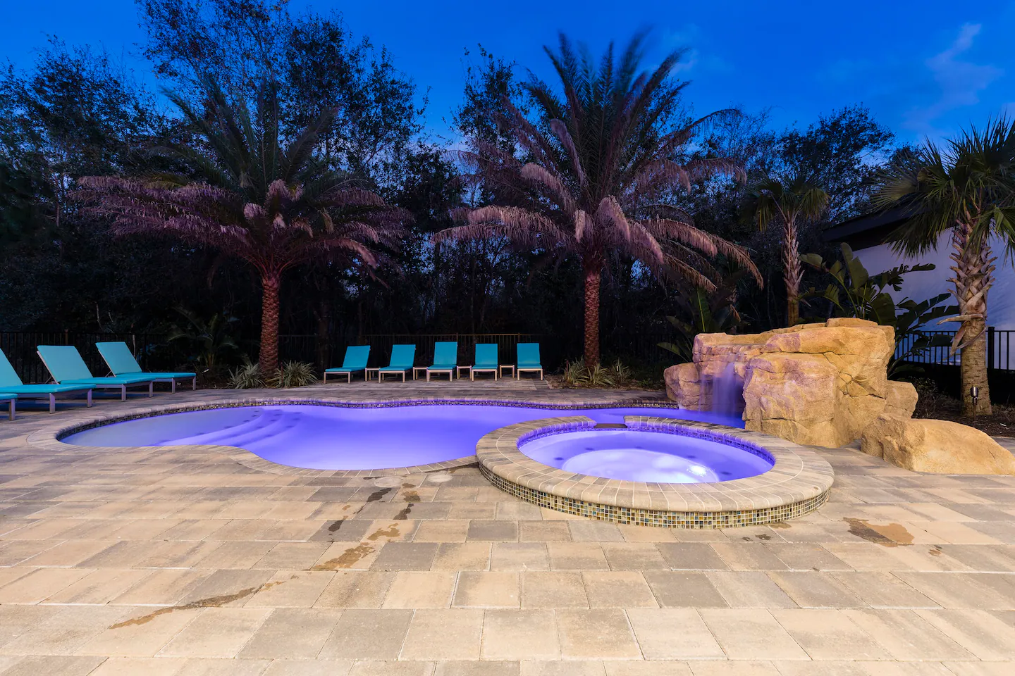Sitting next to the iconic Walt Disney World Resort and at the heart of Orlando’s world-class theme parks and attractions, this rental property gives you not just a place to stay after a whole day of fun at the parks—it also features a cool game room, an upscale home theater system, spacious themed rooms, and a huge pool for some sun and water fun!