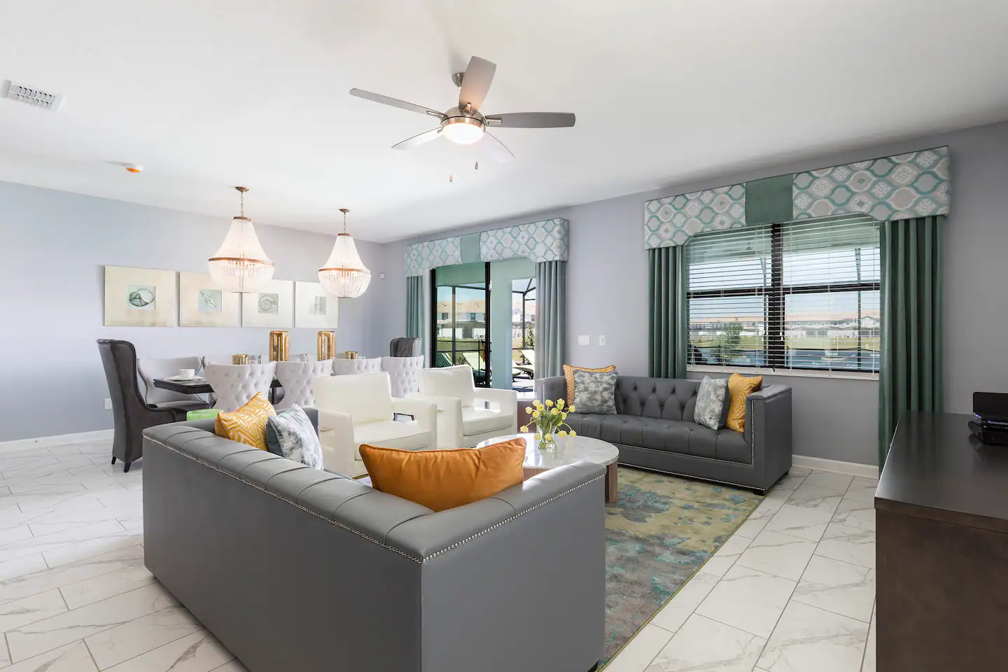 Step into the enchanting world of Mickey Mouse Villa! This newly decorated 5-bedroom, 5-bath pool home is a dream come true with its game room and fabulous upgrades. Accommodating up to 12 guests, our villa is nestled in the prestigious gated resort of Windsor Hills, just a stone’s throw away from Disney World’s magical gates.