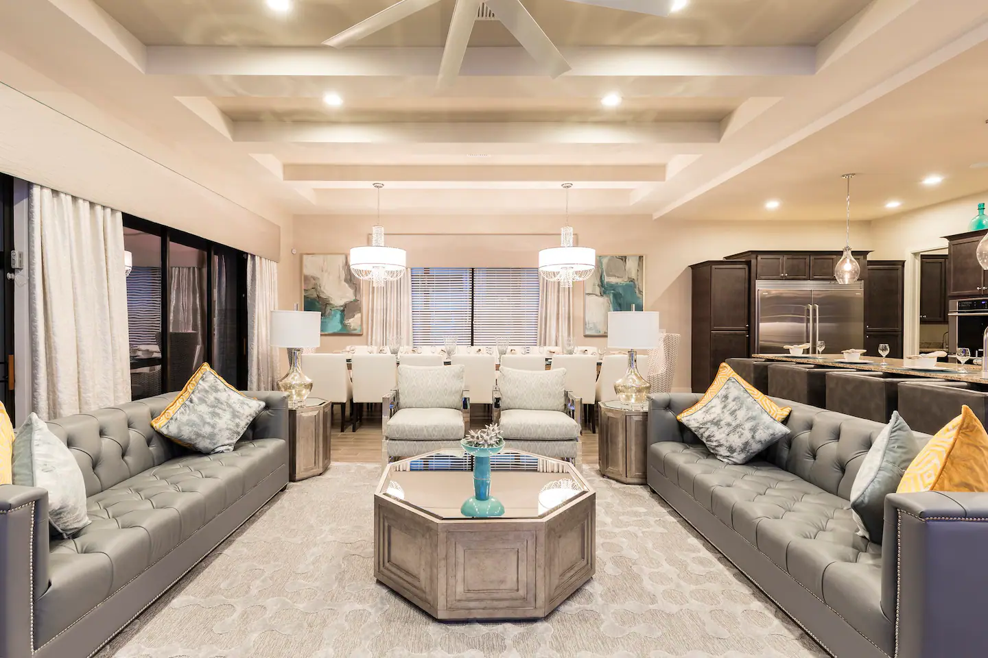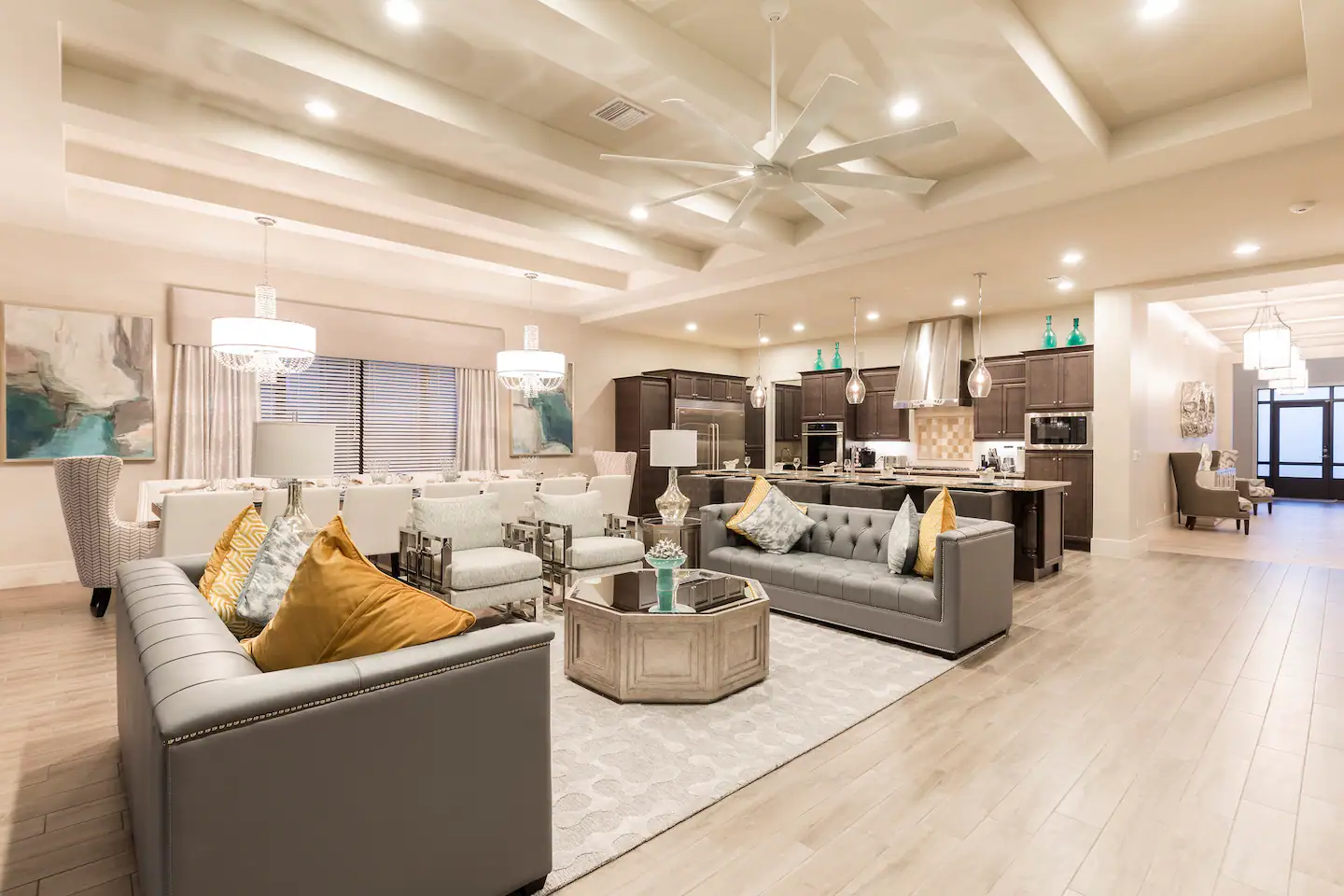 This rental property may look unassuming outside, but the real magic starts when you enter through the door. You’ll be welcomed by spacious themed bedrooms, luxurious amenities, and world-class entertainment options. It also features upscale furniture, a large private pool, and a cinema-like home theater! You’ll also have full access to the top-of-the-line amenities available at Reunion Resort.