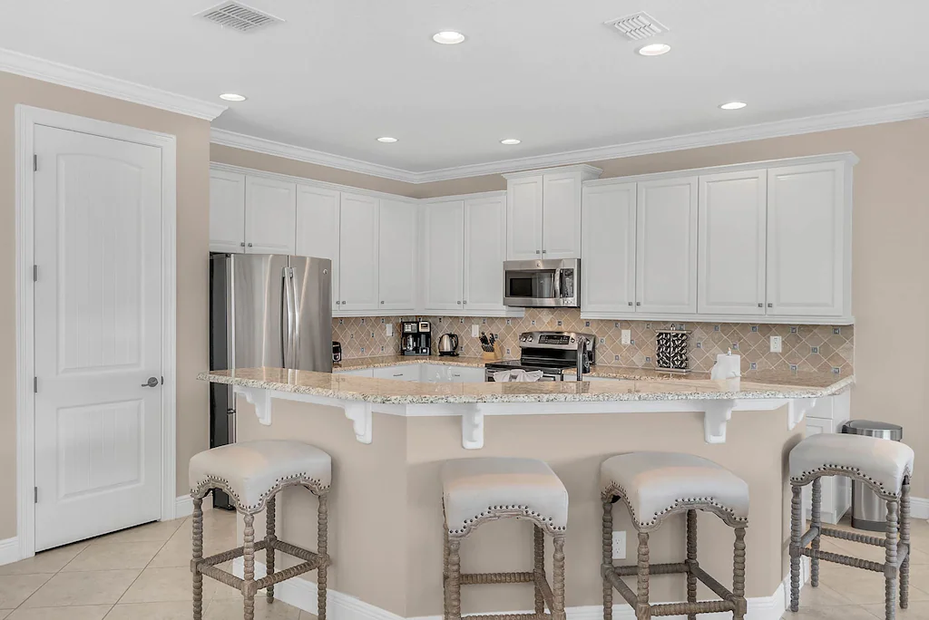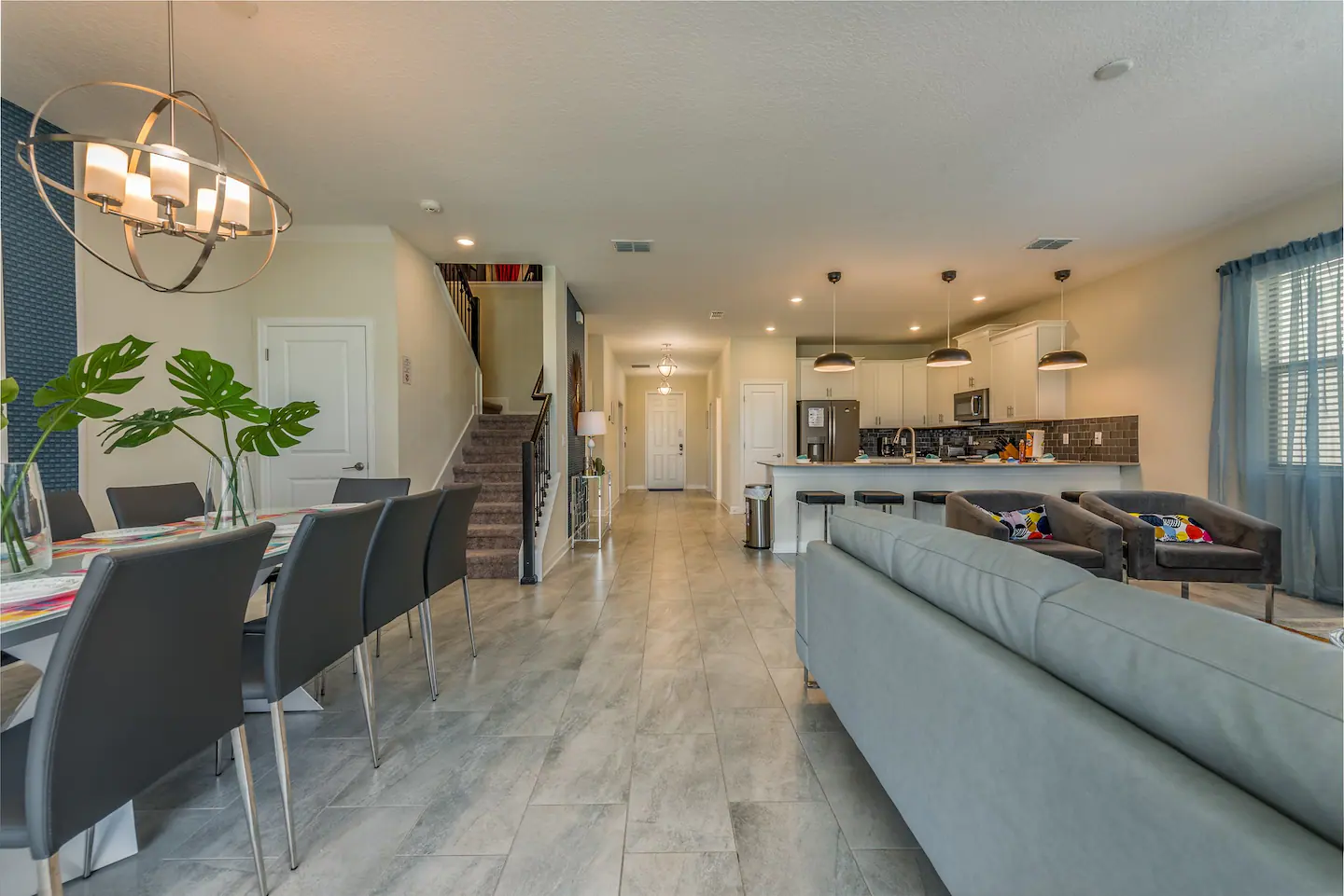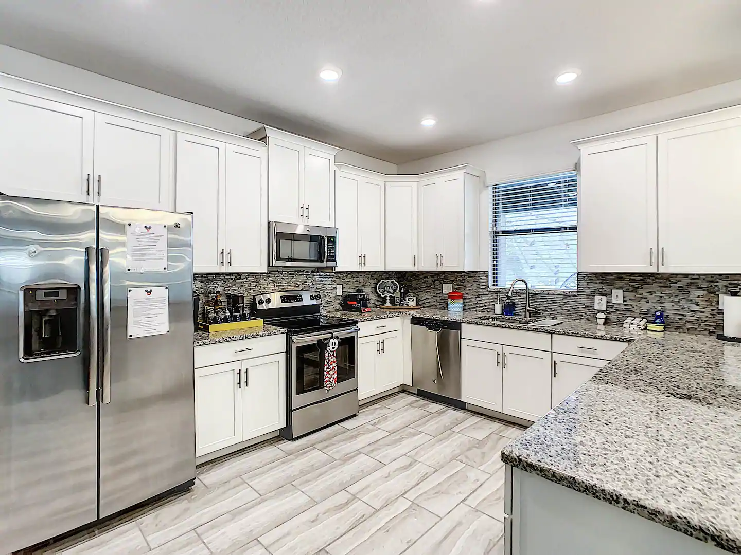 You’ll be delighted that the entire home was renovated from top to bottom in July 2016, boasting brand-new flooring, furniture, appliances, and designer touches. Enjoy the convenience of being mere steps away from the resort clubhouse and pool and a delightful children’s playground. Make your vacation special at one of the closest homes to the heart of Disney magic!
