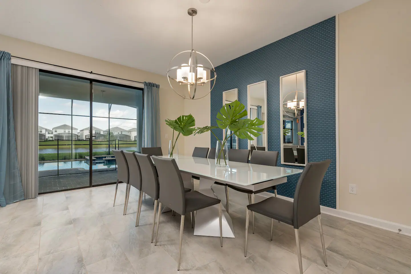 Get ready for a magical vacation at Positive Latitude Villa! This Disney-themed rental offers an incredible private waterfront oasis with a renovated pool, spa, and stunning pond views and fireworks. Located in the sought-after Emerald Island Resort, just minutes from Disney and other attractions, this luxury home boasts 8 bedrooms and 4.5 bathrooms.