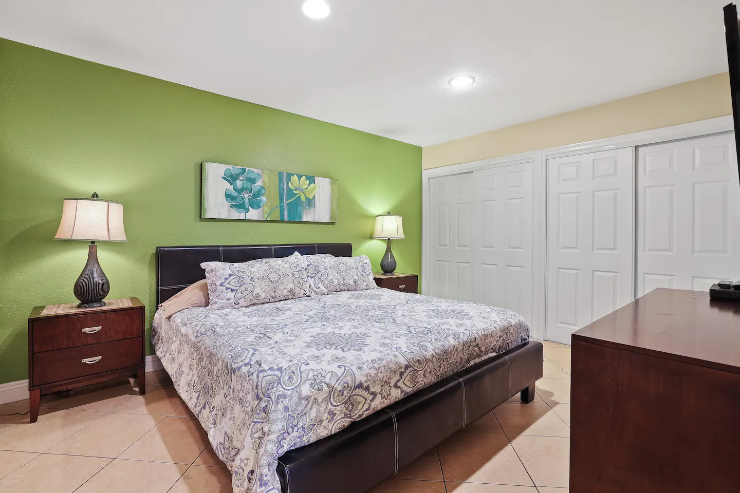 The entire home was renovated from the ground up in July 2016 with brand-new flooring throughout, brand-new furniture and appliances, and high-end designer touches. Practically everything you see in the house is brand new! The lower level has three bedrooms, including the two master suites overlooking the pool. The upper level has two bedrooms.