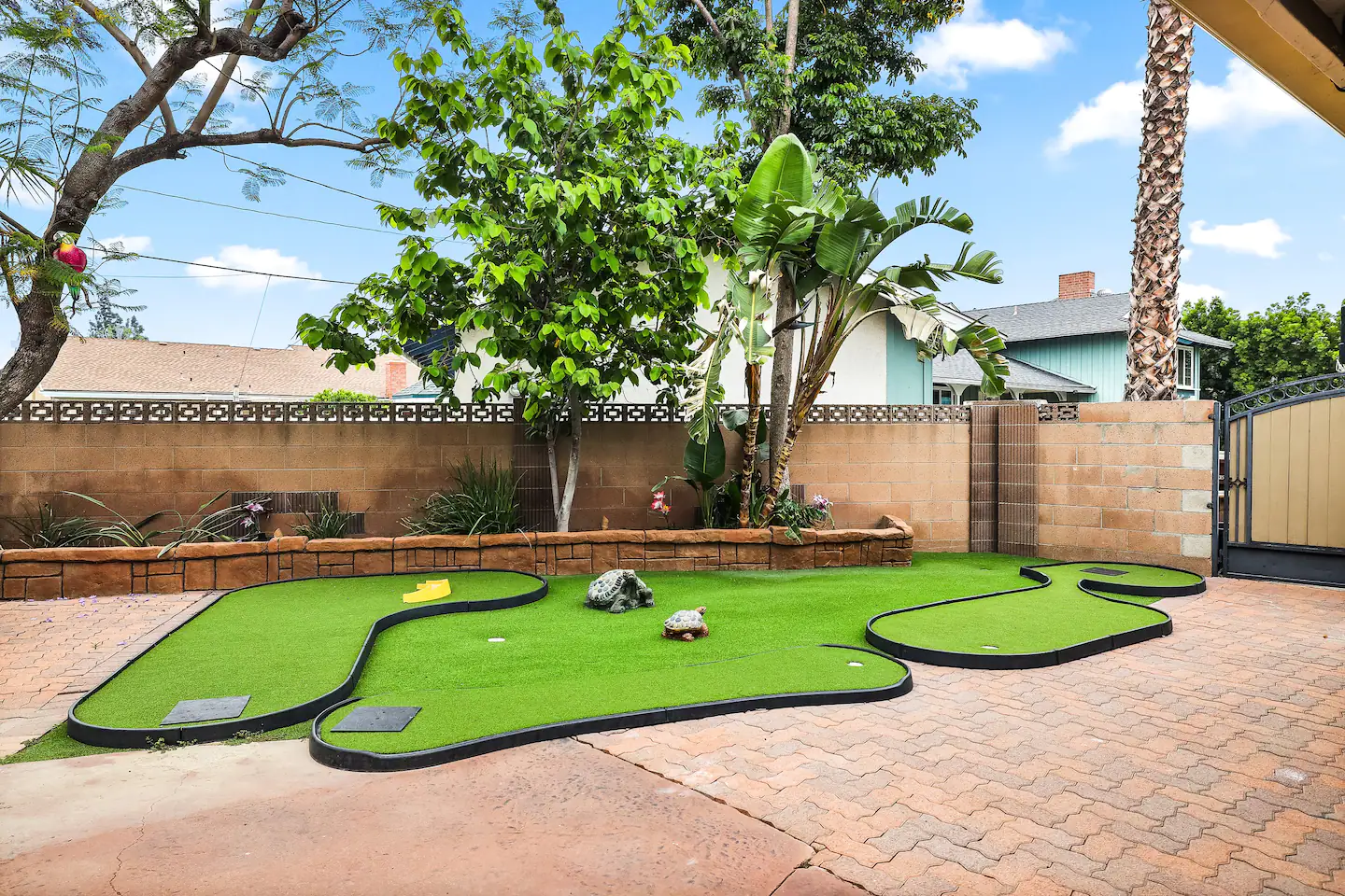 Take the entire family out on the ultimate Disney vacation they will never forget, and be the SuperDad/SuperMom that you are with this rental property in Anaheim, California. The fun doesn’t stop after you’ve left the Disney parks because the magic continues in this cottage with its wonderfully-decorated themed rooms, an engaging playroom for the kids, and an exciting heated rock pool and slides! It also features a mini golf course and a charming, relaxing patio after a long fun day.