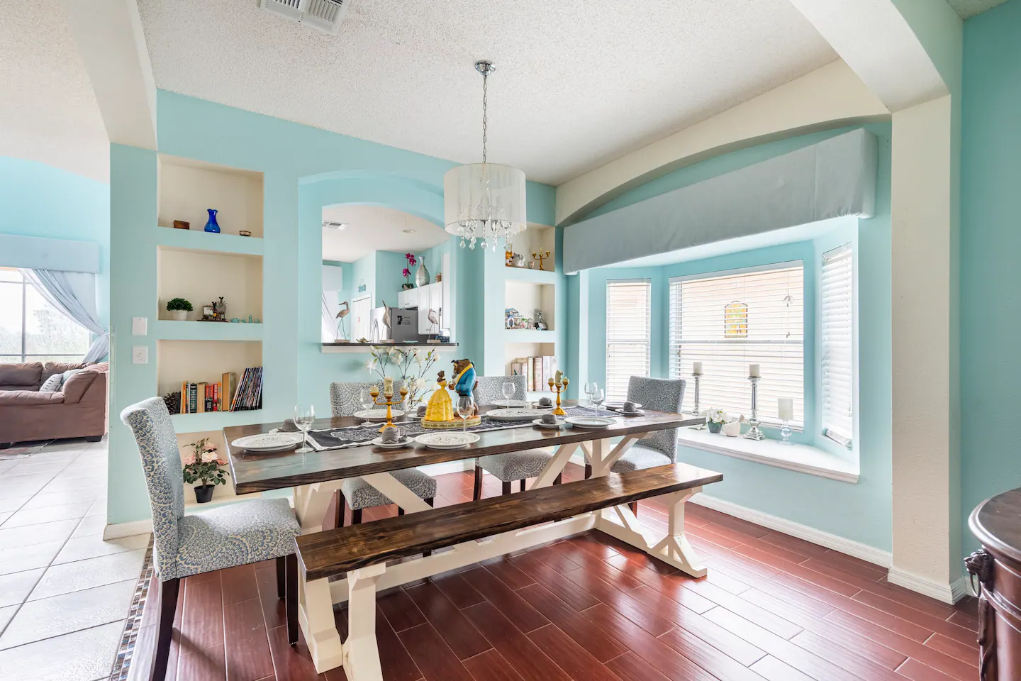 If a whole day of Disney Parks experience won’t suffice, extend the fun and stay at this luxurious Disney-themed house in Kissimmee, FL! Aside from the wonderfully decorated and spacious rooms, this rental property also offers Disney-themed amenities, a home theater system for Disney movie marathons, and a comfortably-heated aqua-blue pool and family-sized spa. With this beautiful home, you’ll surely have your Happily Ever After!