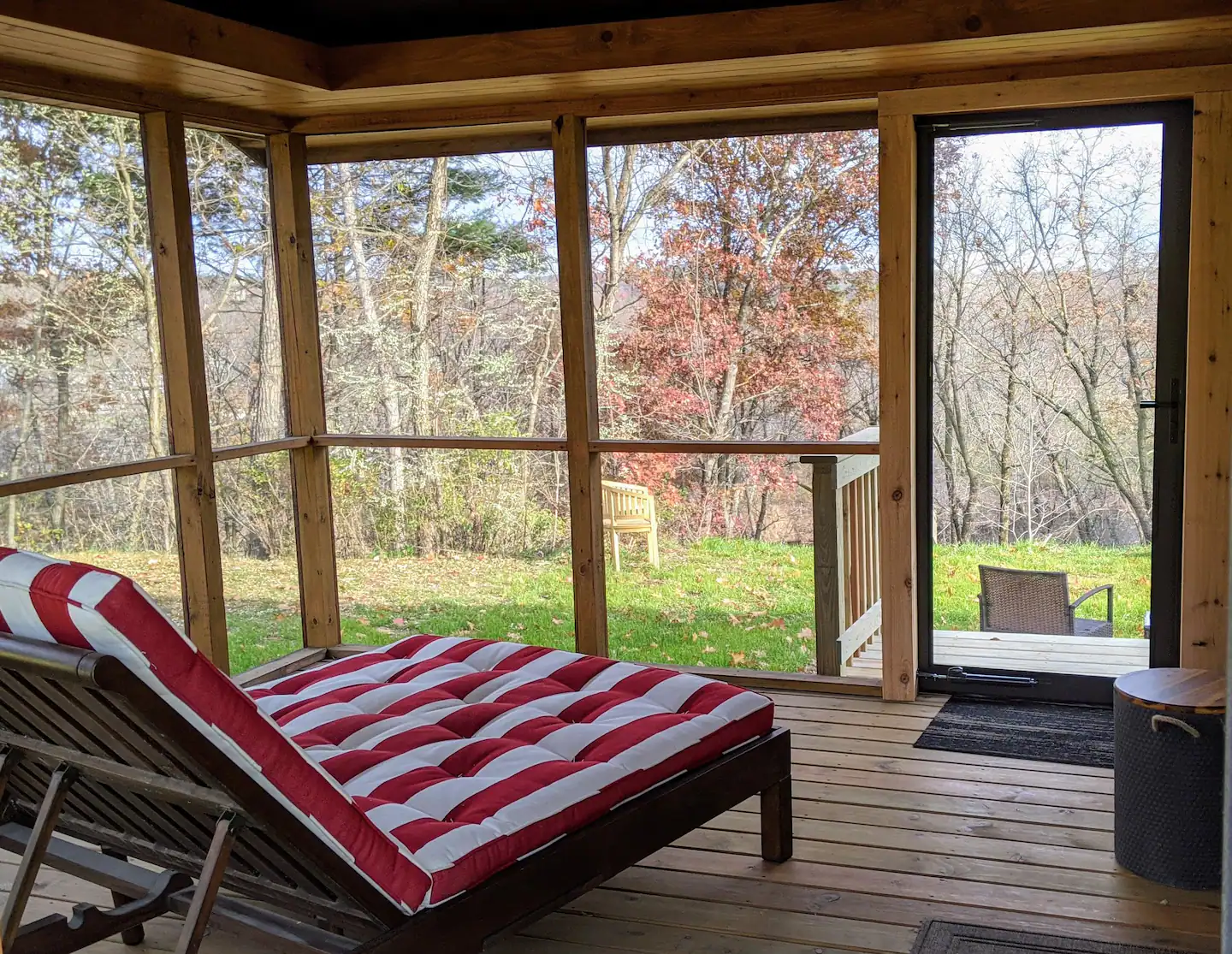 A wall of windows offers ever-changing views of the Black River. A plush day bed on the screen porch is great for a lazy nap, for listening to the babbling rapids below, or just curling up with a book and enjoying!