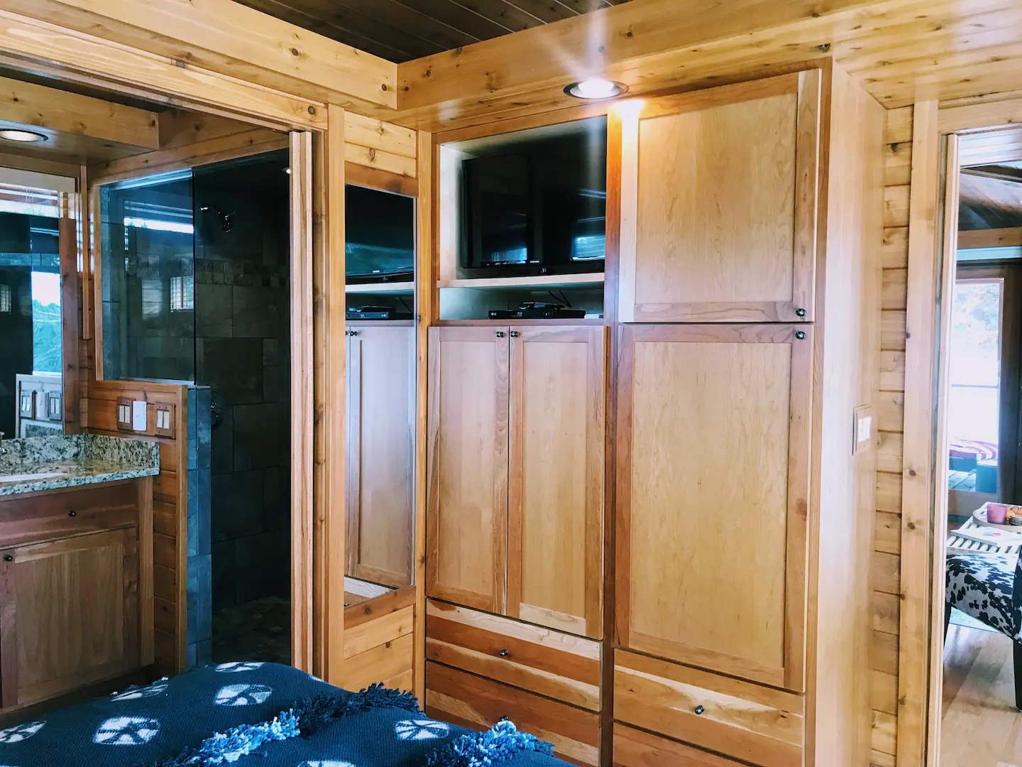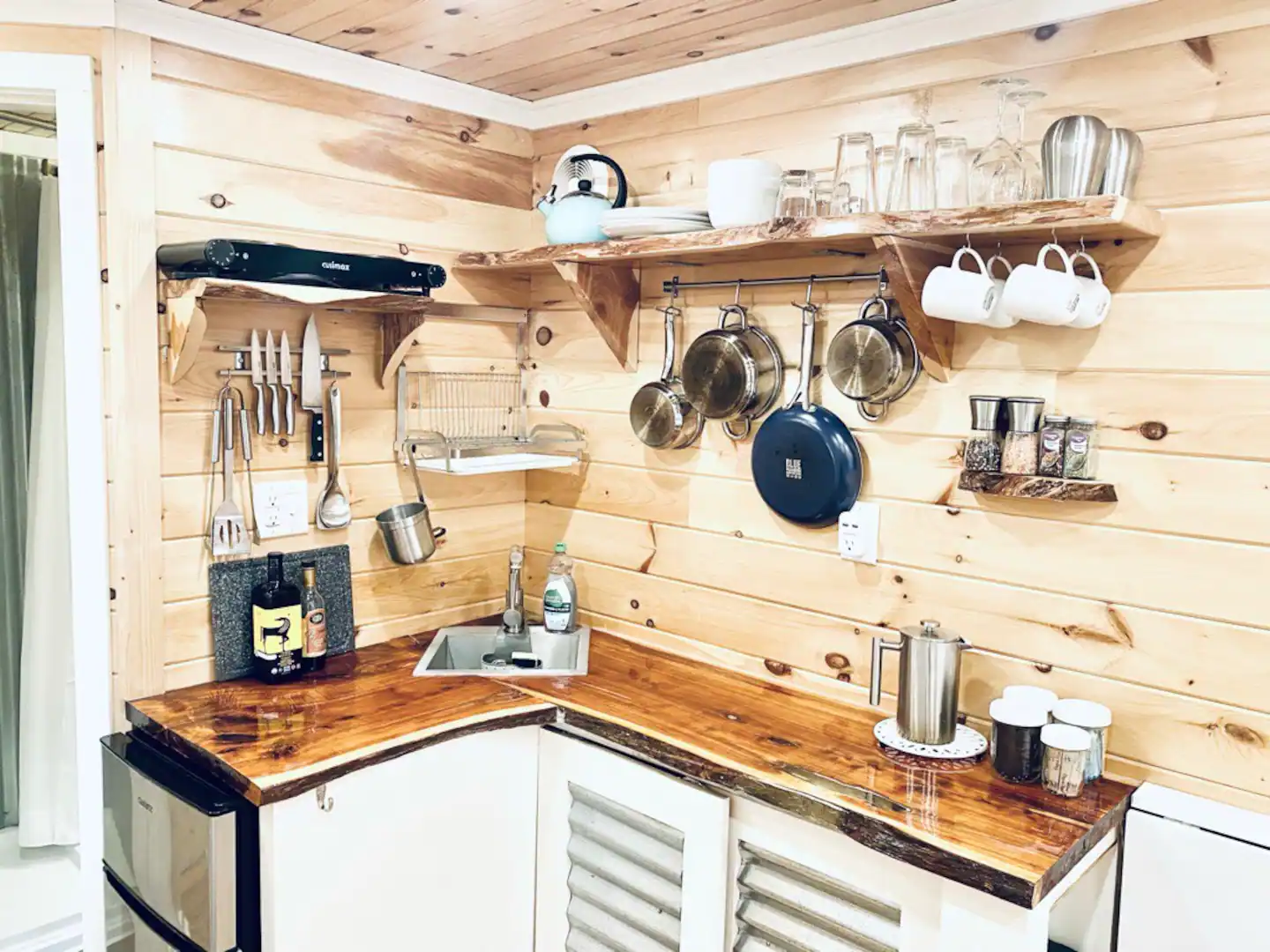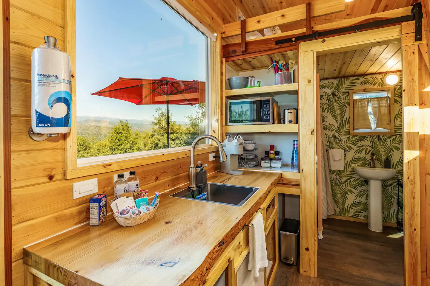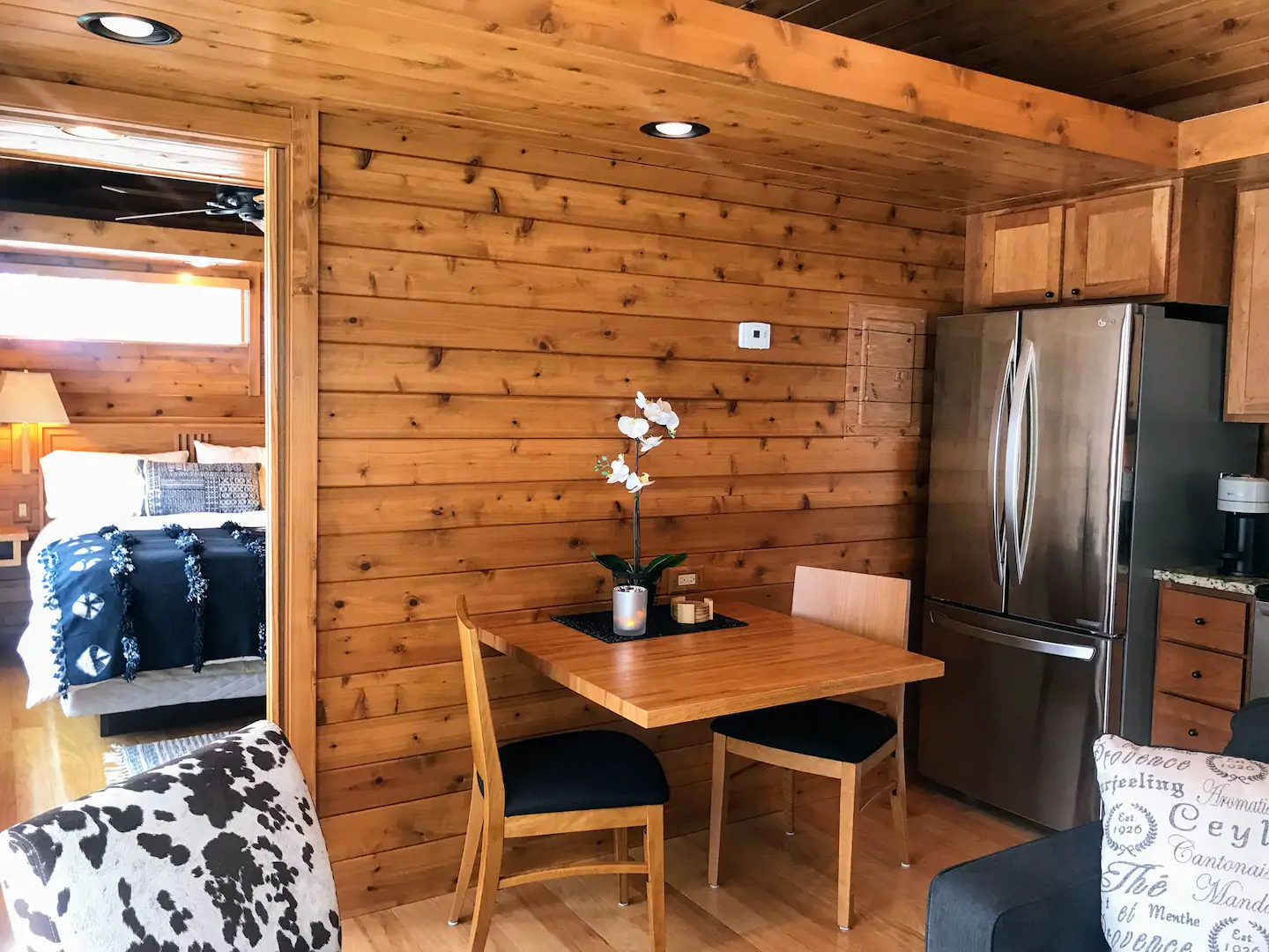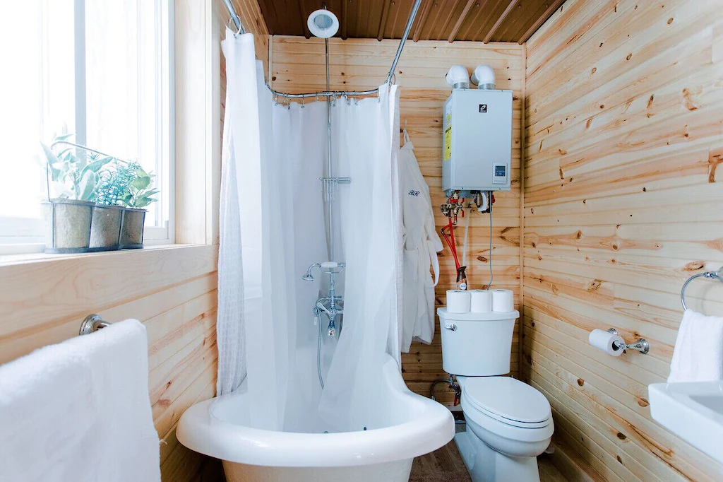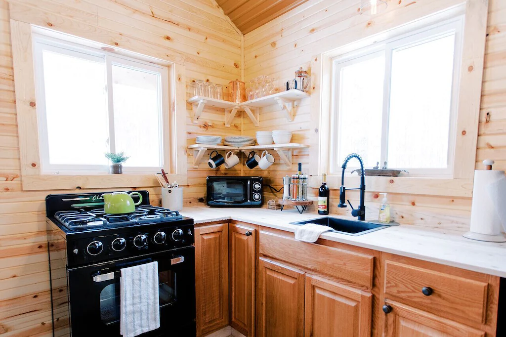 This tiny home may be small in size, but it doesn’t skimp on giving its guests spectacular views of nature outside. With huge glass windows, you can take in the beauty of the Black River while lying on the luxurious beds or lounging on the sofa. If you appreciate the finer things in life, you’ll also love this rental property’s oak floors, cedar trims, and granite countertops.