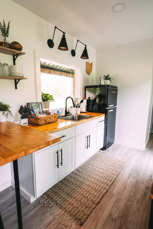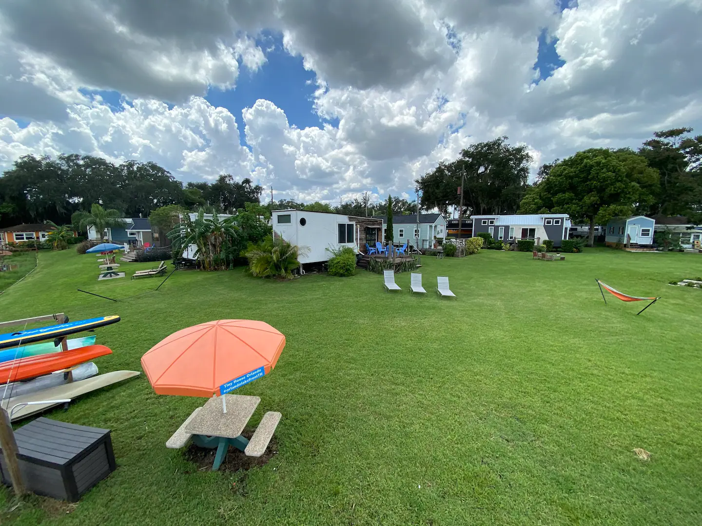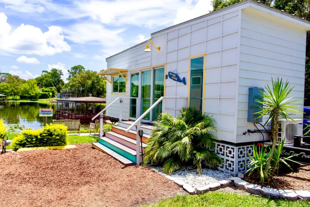 This tiny home in Florida may be limited in size, but the amenities and activities you can enjoy while in it will leave you spoilt for choices. This property by the lake features a comfortable bedroom that can sleep up to 4, a surprisingly spacious kitchen, and high-end amenities. It also offers free use of kayaks and paddle boats and has hammocks, a fire pit, yard games, volleyball, cornhole, a propane grill, and fishing gear available upon request.