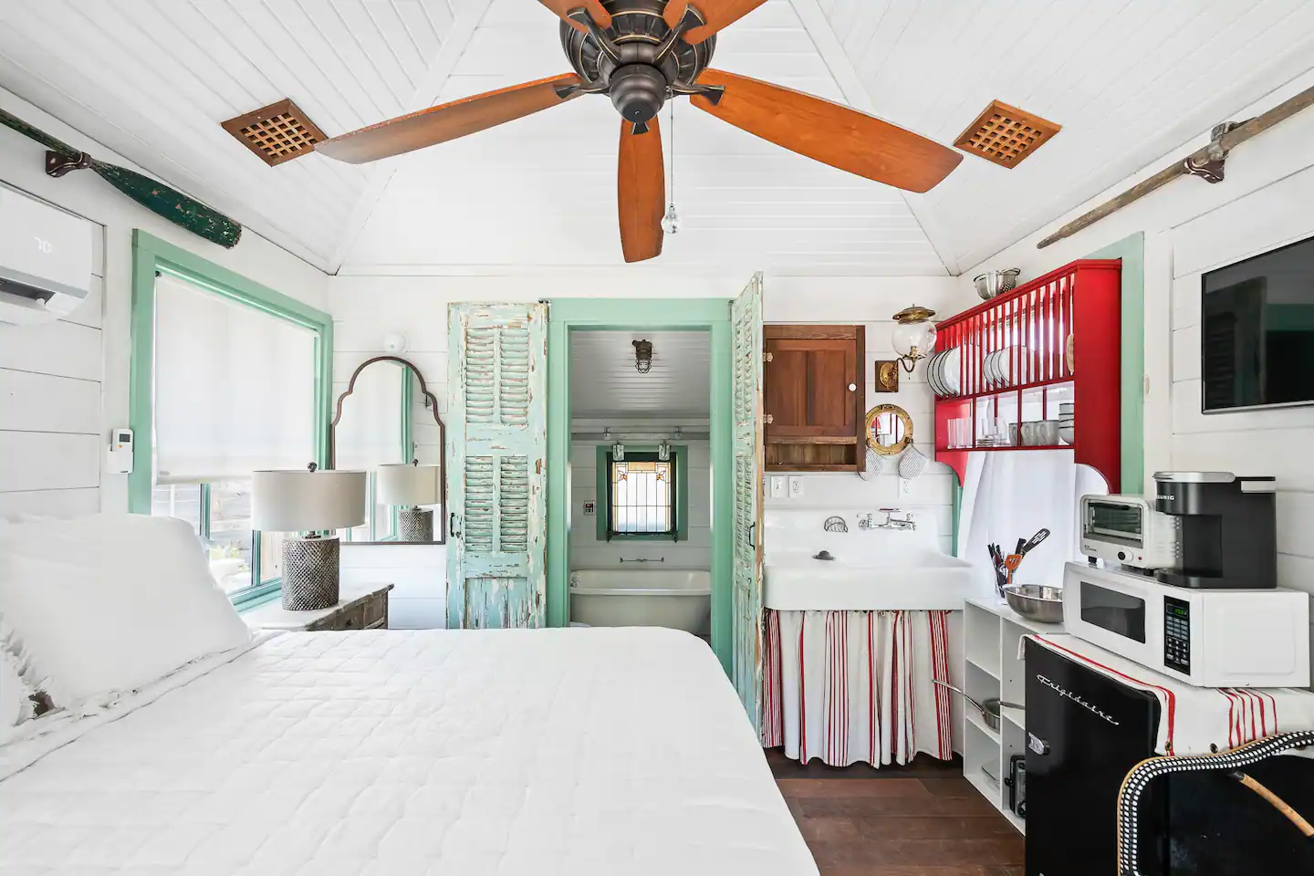 If you want a minimalist vacation stay with no fuss and no frills, this rental property in the art district of Matlacha is for you. With just enough amenities to cater to your basic needs, like beds, a kitchen, a toilet, and even a BBQ grill and picnic tables, this tiny home embodies the concept of beauty in simplicity.