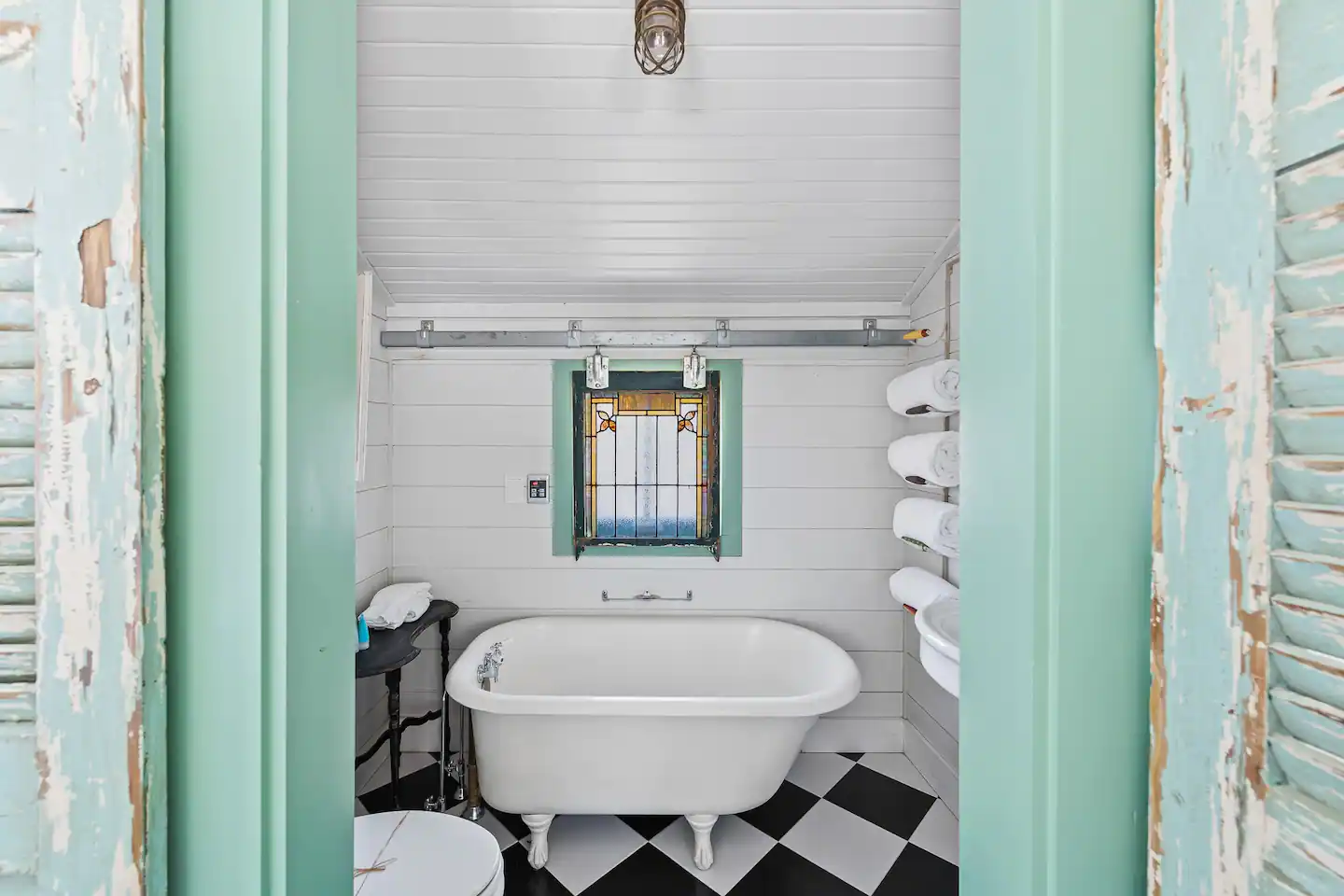 This home is fully equipped with a private plunge pool for those hot summer days, string lights for ambiance, a BBQ for grilling out, an outdoor shower + full washer/dryer, a claw foot soaking tub, queen size bed, cable TV, and more! It truly has it all!