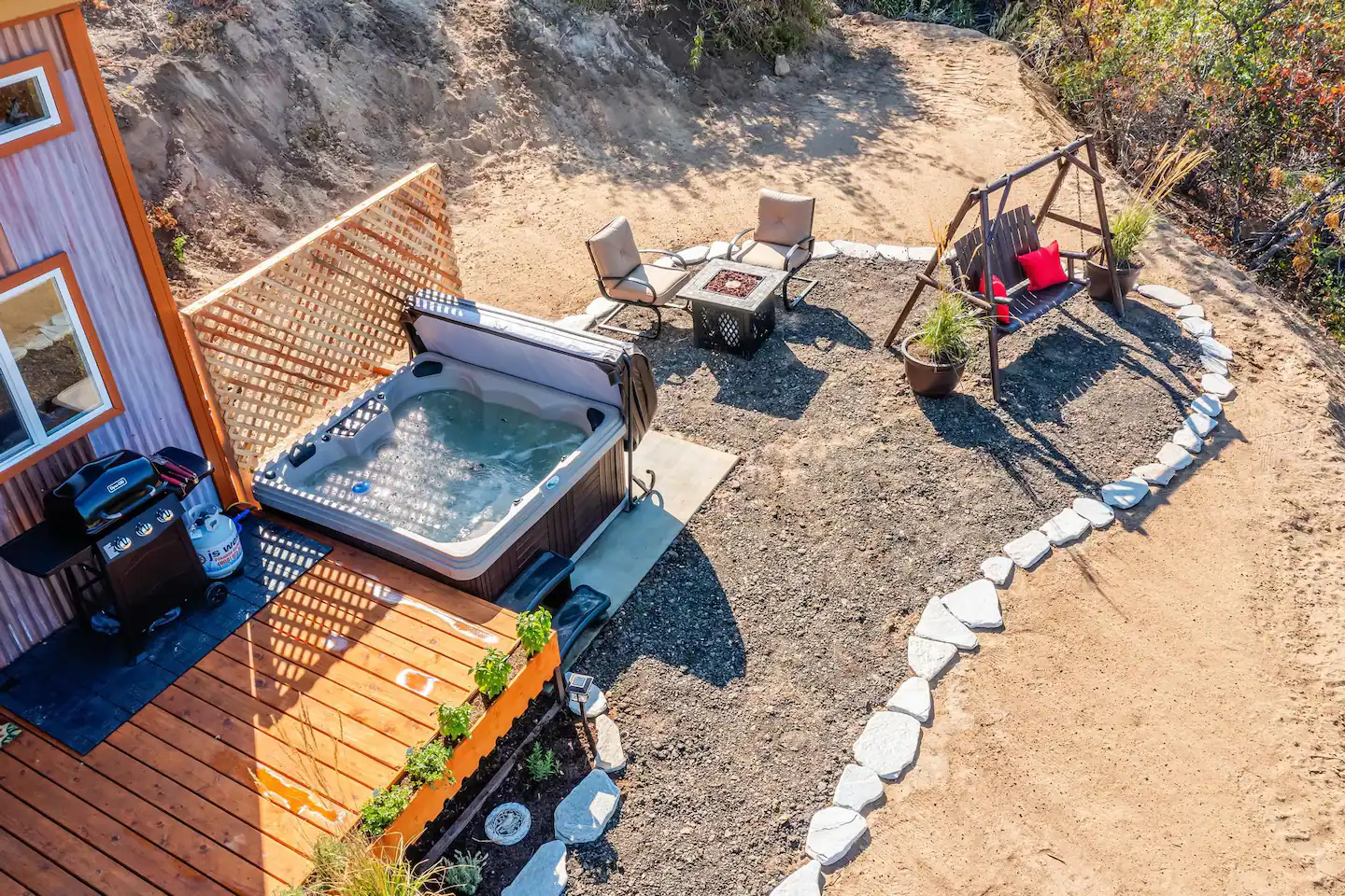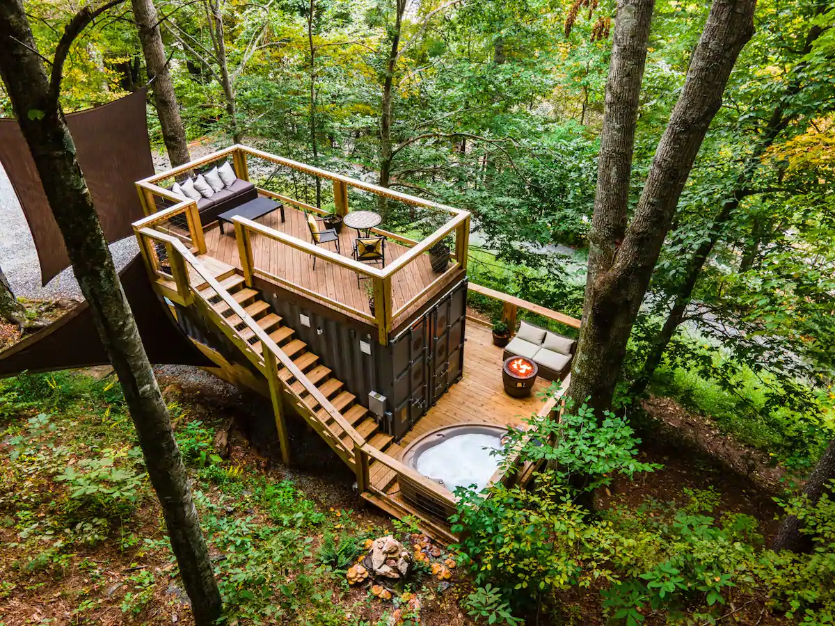 Designed with sustainability in mind, this tiny house in North Carolina is perfect for those who want to make this world a better place by leaving less and less footprint on the planet. The Tiny Bunker is a meticulously designed rental property that aims to build a connection with nature while still providing the comforts of home. It has a hot tub, high-end rooms, and a comfy seating area to take in the majestic views of the mountains and wildlife.