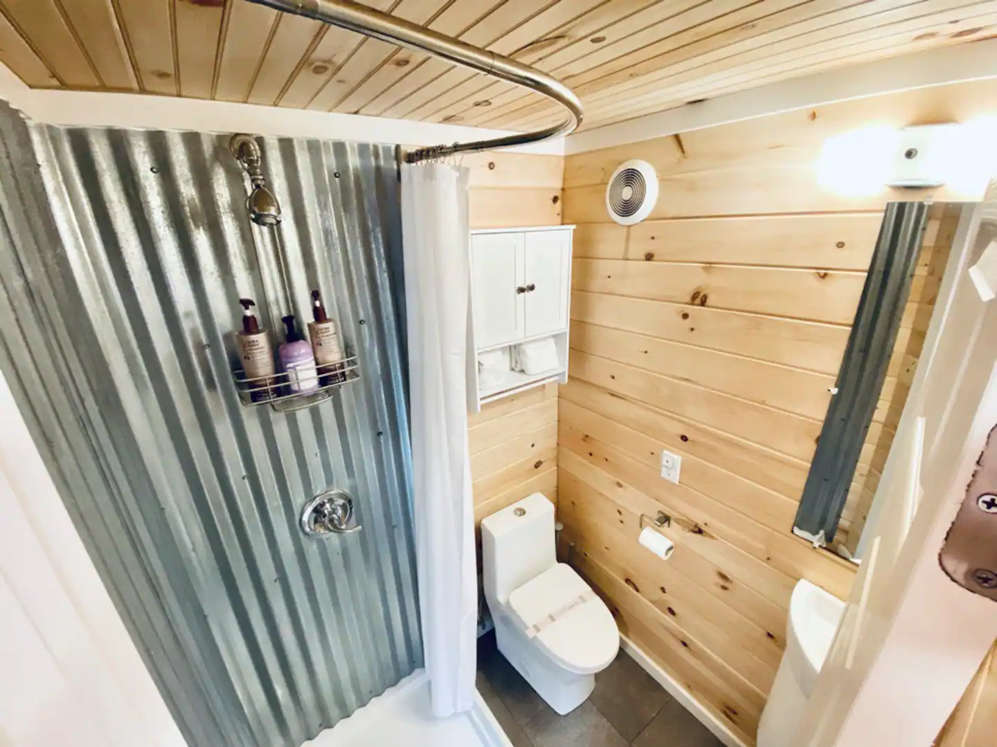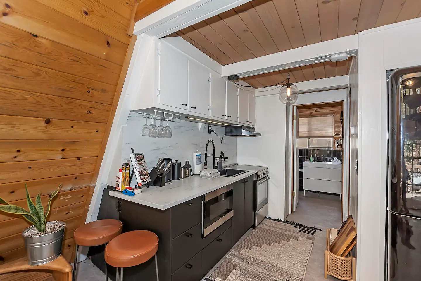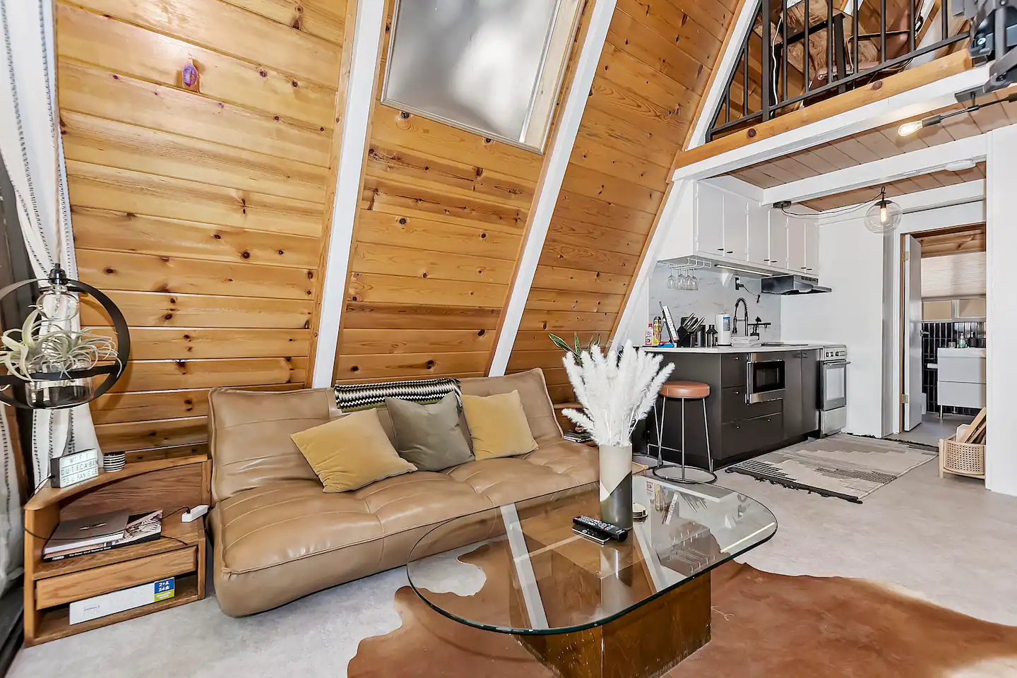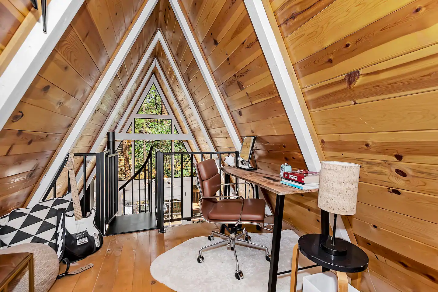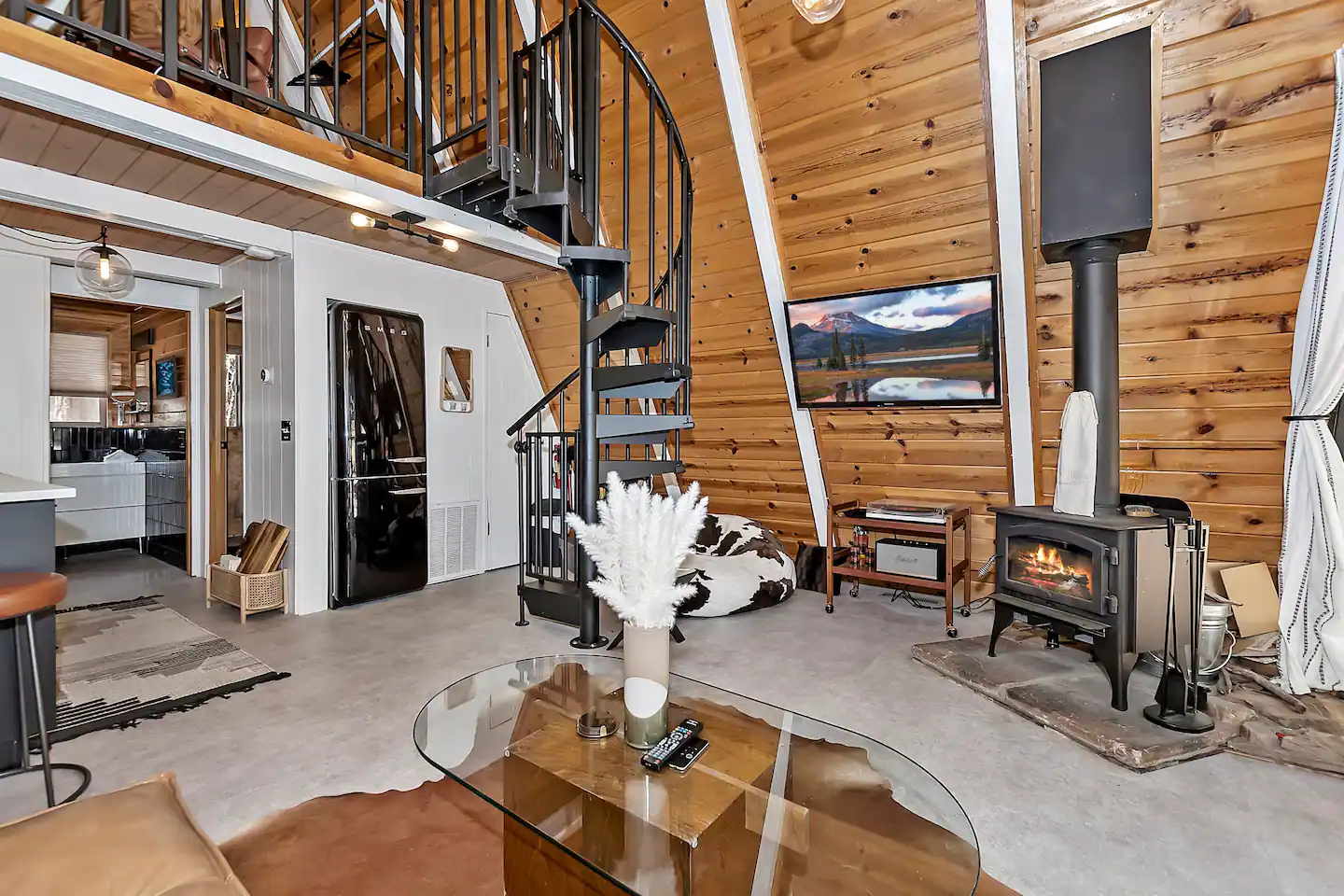 This recently modernized cabin has two sleeping areas (one upstairs and one downstairs), with Instagram-worthy decor and a super sweet spiral staircase.