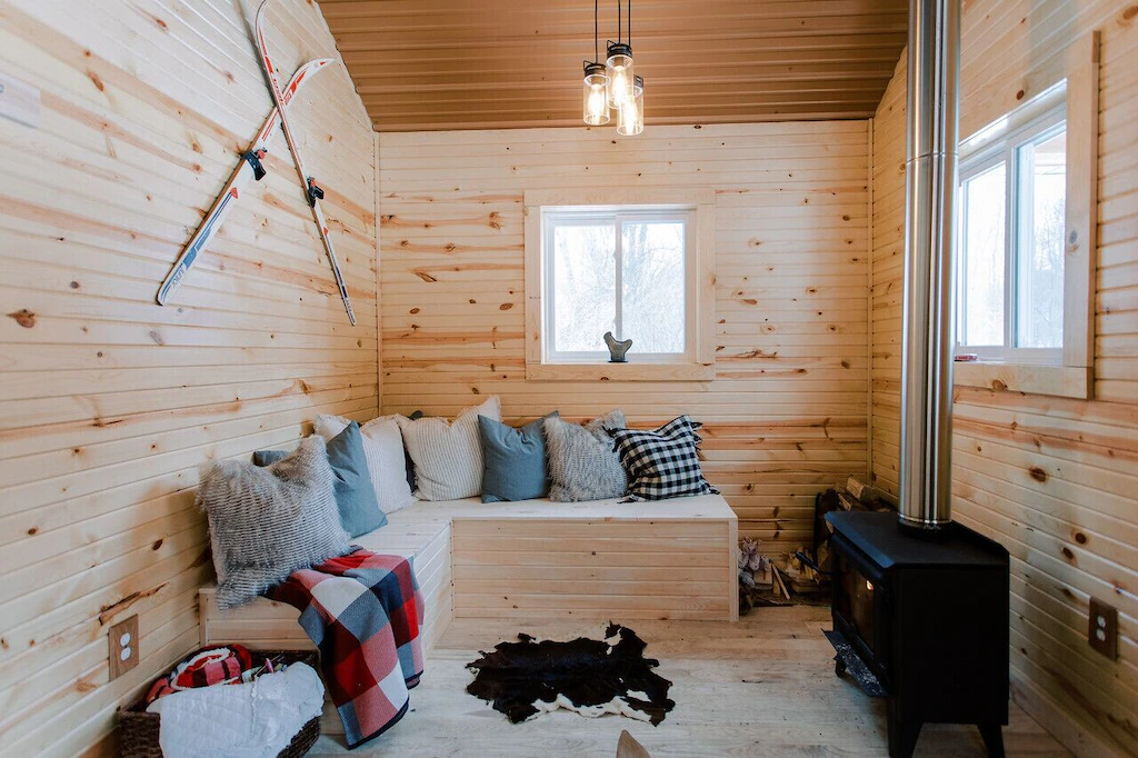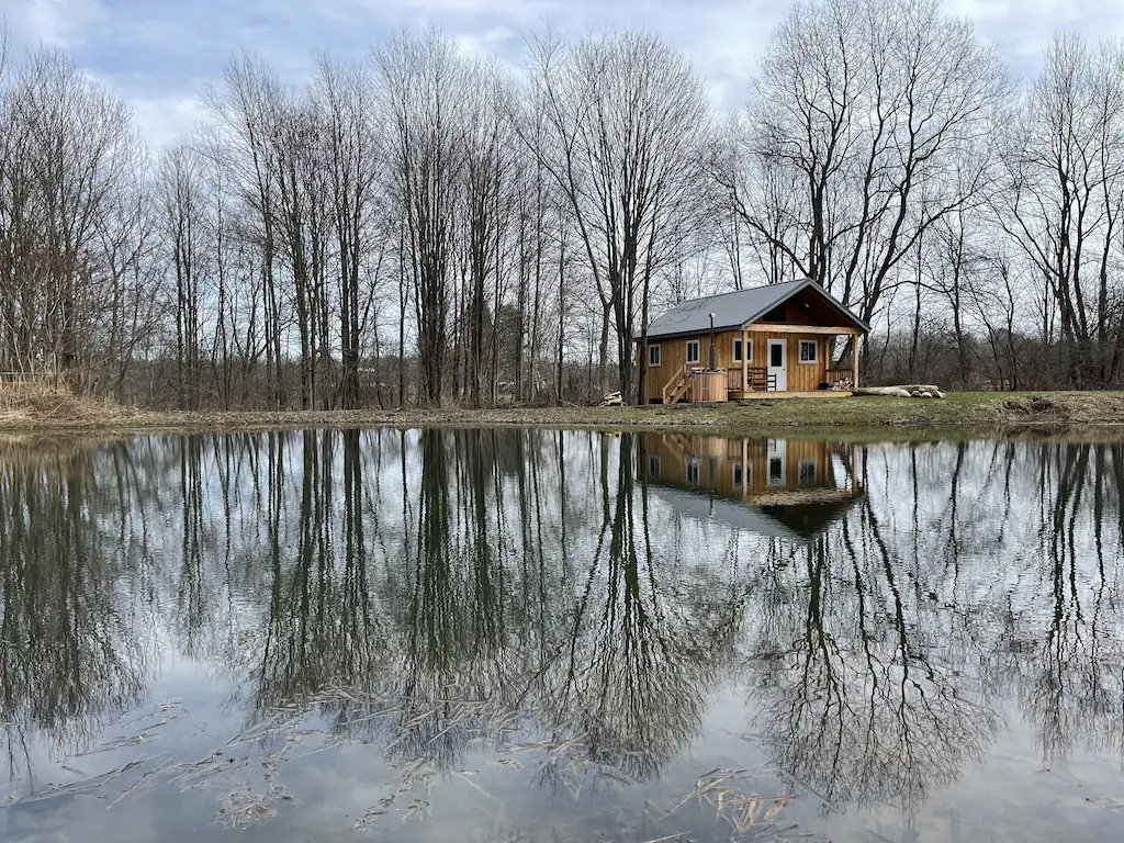 Just big enough to be the perfect rental stay for a small family getaway or a romantic vacation for two, this tiny home by the water has all the essentials you need and a little bit more. It offers an enchanting view of the Bear Ridge pond, an equipped kitchen, fast WIFI for emails that just can’t wait, and to top it all off, this tiny home has its own cedar snorkel hot tub that you can relax in a while taking in the majestic sights and the experience of being among the trees and wildlife.