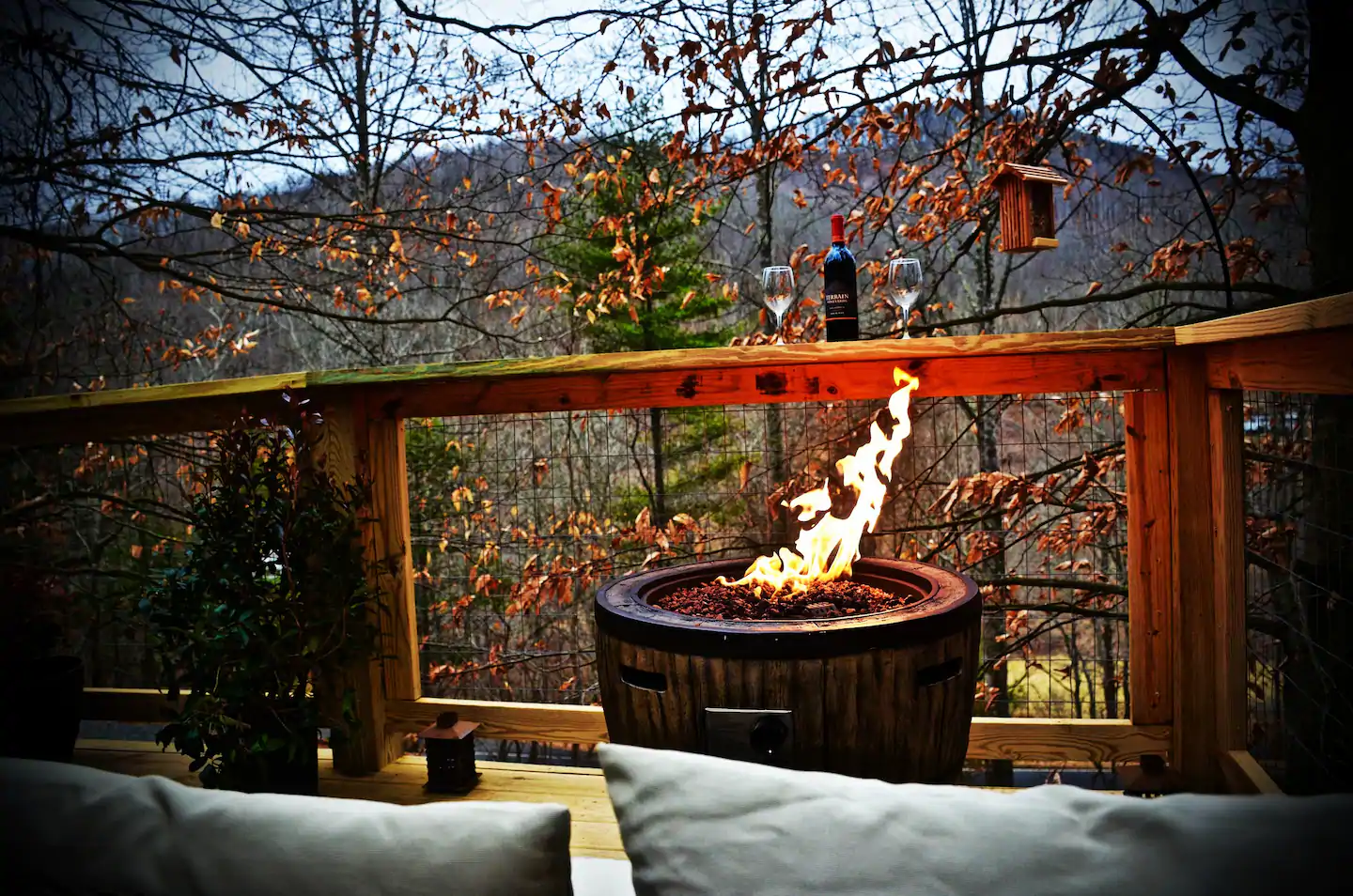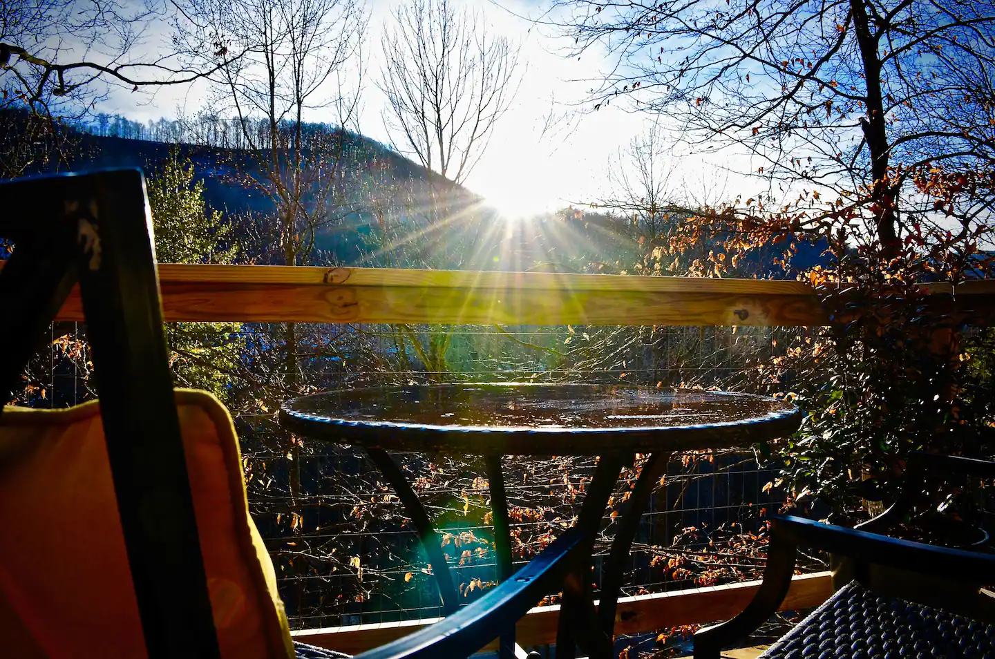 The outside deck has a private deck with an outdoor dining area and a charcoal BBQ grill for you to use (charcoal not provided). The cabin’s deck is the perfect place to breathe the fresh mountain air and relish in the warm mountain sun.