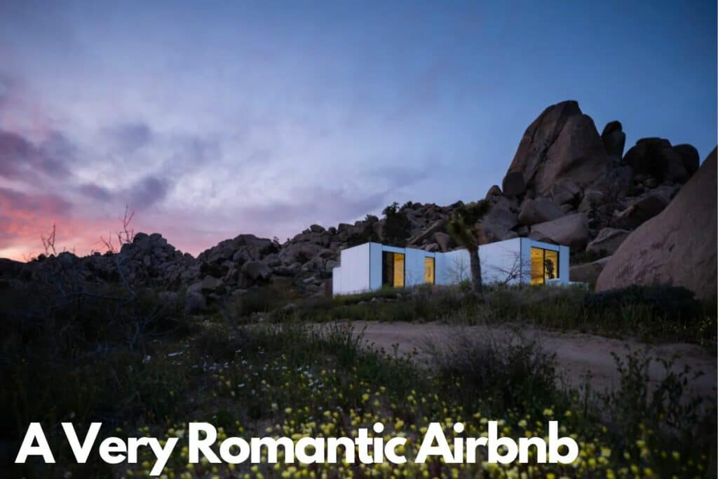 This gem, perfect for romantics, stands out with its white, modern design amid the desert’s grand boulders. It’s your slice of the Mojave, ideal for those sunrise and sunset selfies with your loved one. Nights here? They’re magical. Imagine unwinding in a hot tub under the stars, feeling like the only two people in the world. After all, that’s the essence of love, isn’t it?