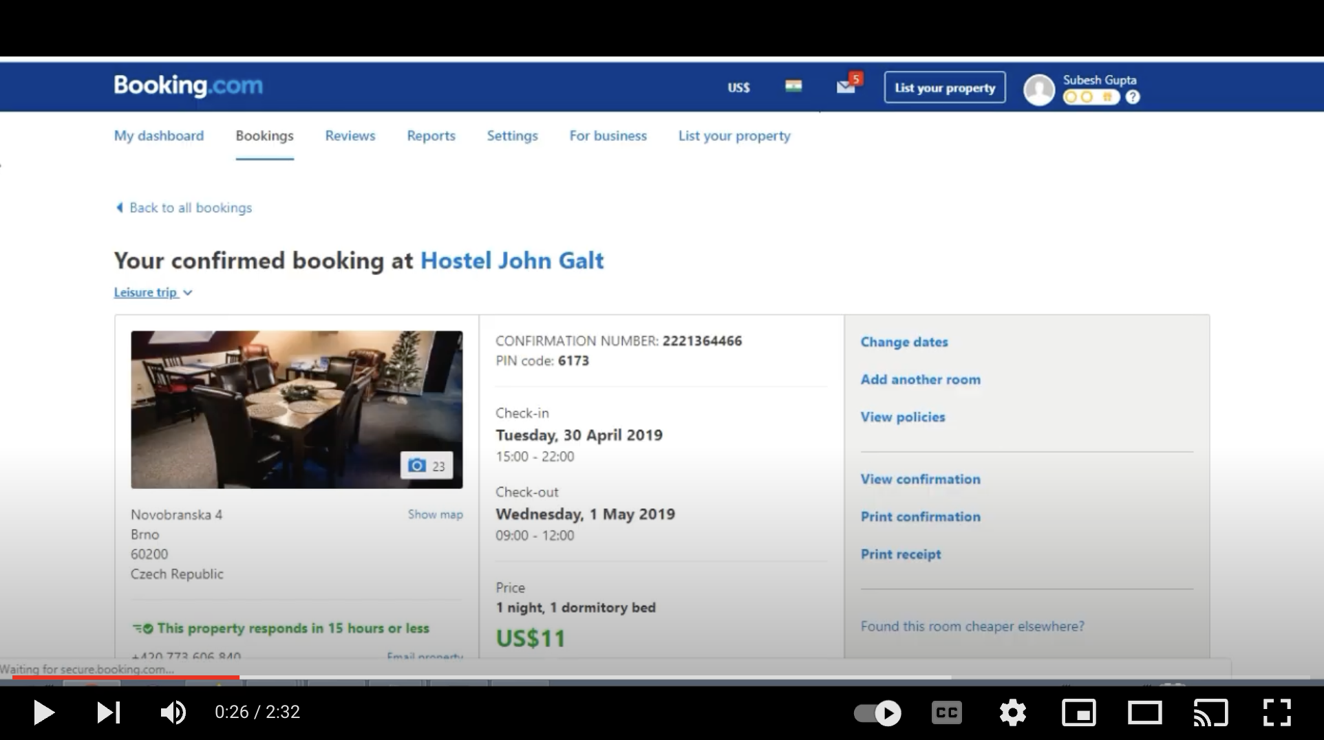 Just follow this short video to cancel a Booking.com reservation.