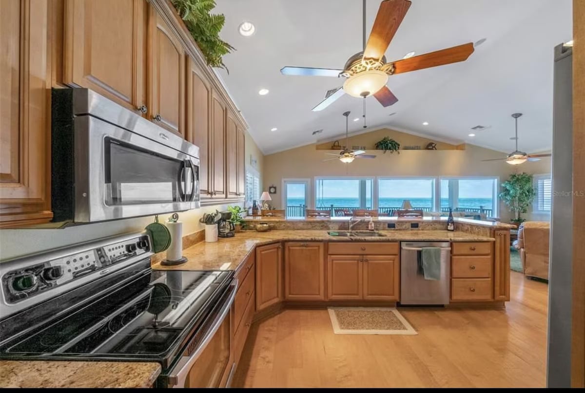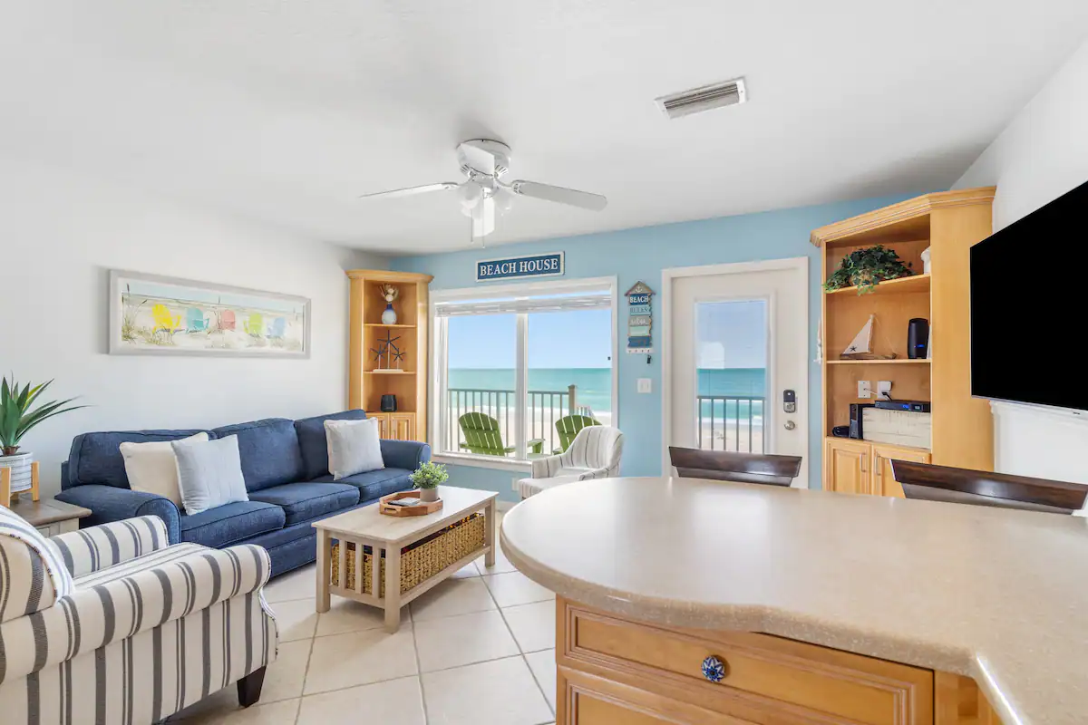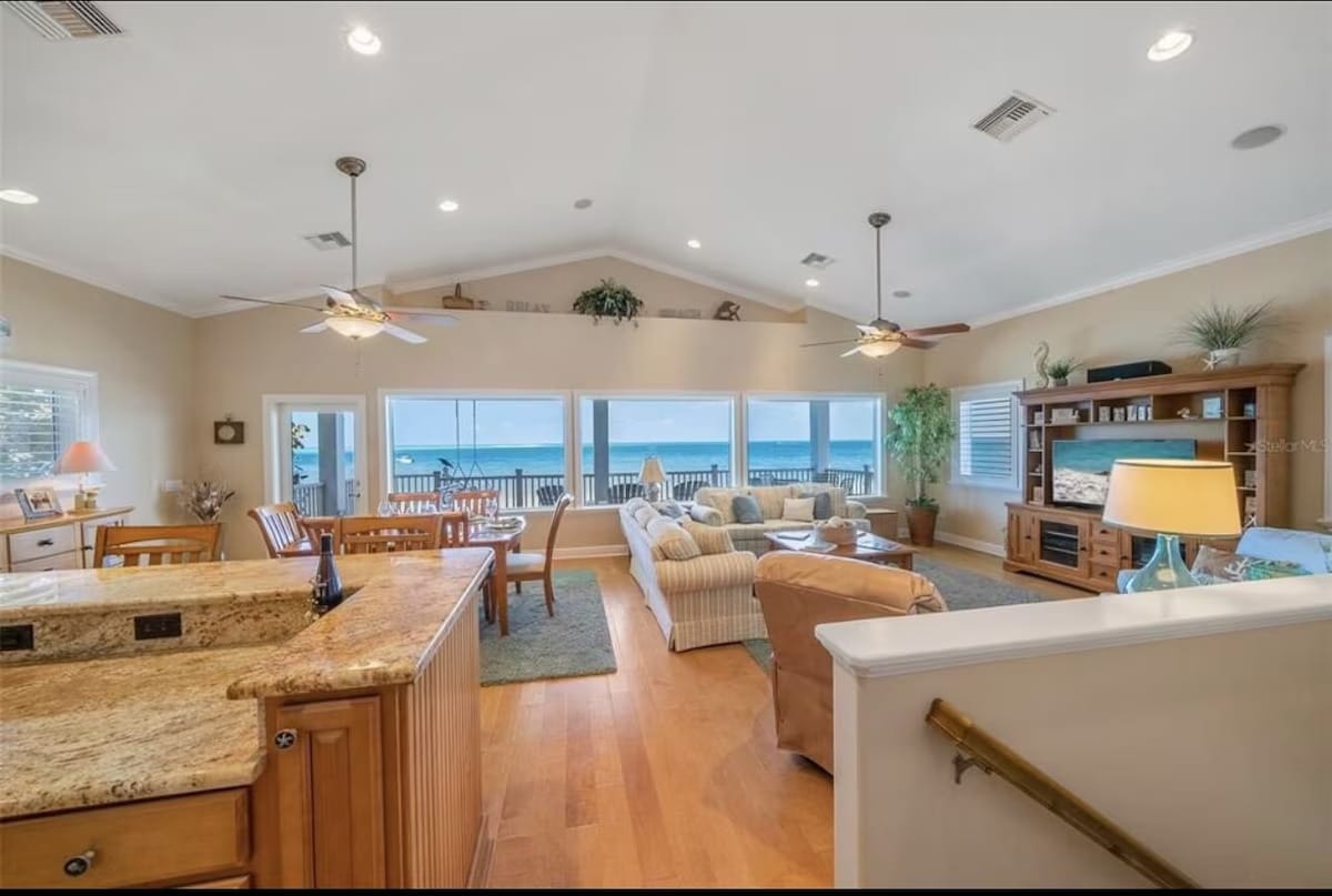 Inside, it’s all about spaces that flow like a chill playlist. Vaulted ceilings, windows wide open to the Gulf’s glory, and a living area that’s all about vibing out, complete with tech goodies for nights in. The deck? It’s your open-air lounge, grill included, because why not dine with a view?