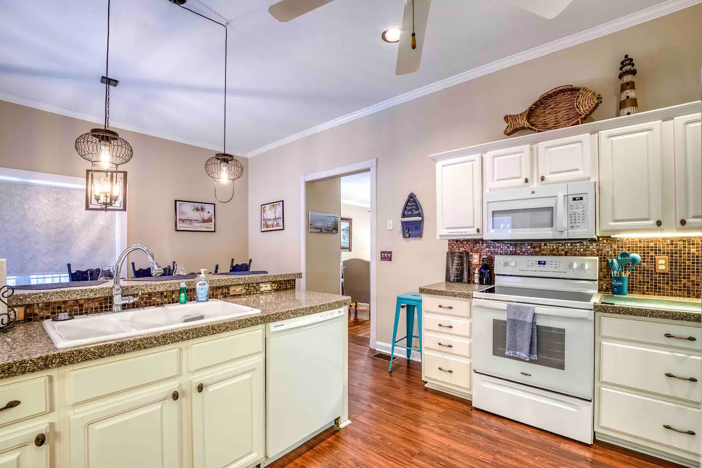 Tech meets tranquility with high-speed Wi-Fi and a Sonos system, ensuring your beach playlist is always on point. The kitchen, a haven for the culinary curious, features top-tier appliances, making every meal an event.