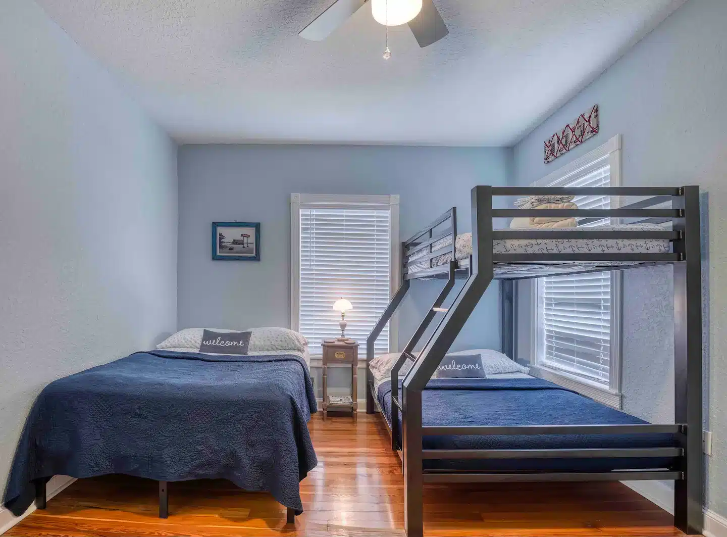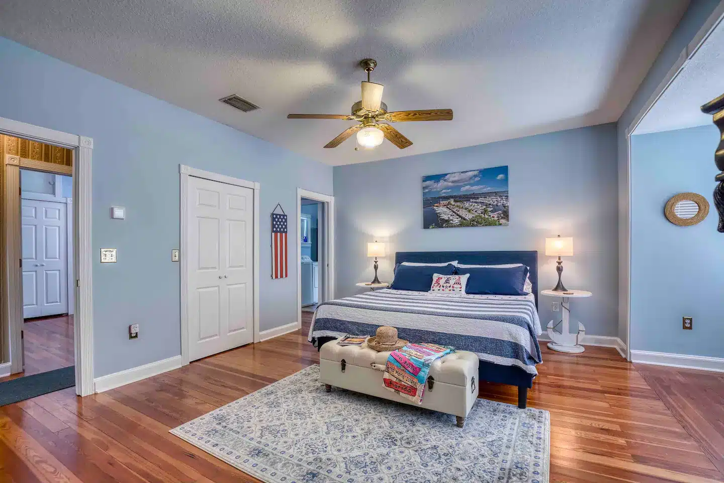 Outdoor life here is no afterthought. This chic home also features a saltwater pool that’s all about that float life, and a porch where rocking chairs and hammocks spell out relaxation in capital letters. Inside, five bedrooms offer dreamy sanctuaries, linked by Jack n’ Jill baths that keep everyone connected yet comfortably apart.