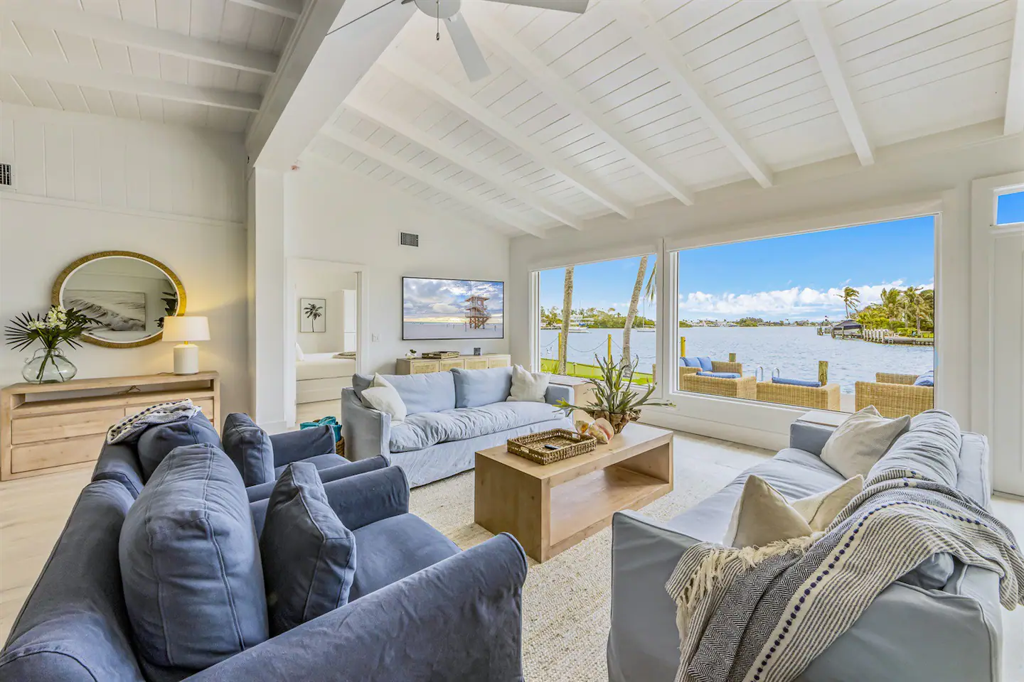 Perched on its own 2-acre island, this bespoke sanctuary, aptly called Private Island Beachfront Home, offers boat-only access, ensuring every moment is draped in privacy and is as exclusive as it gets. With 300 feet of your own beachfront, mornings begin with salty breezes and the kind of peace you’ve only dreamt of.
