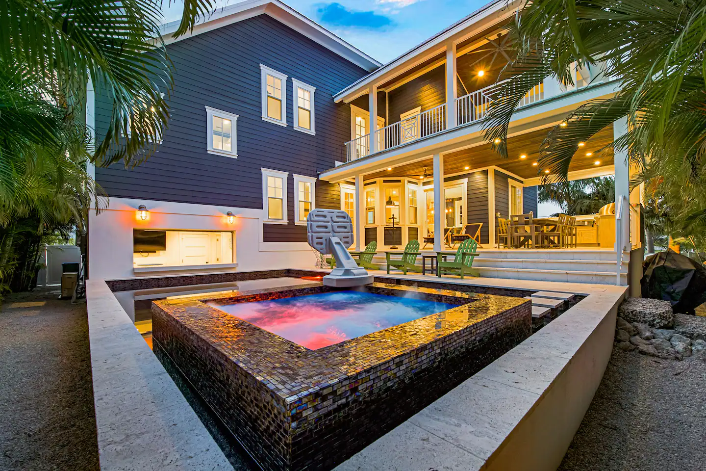 It boasts of a pool with its own swim-up bar (yes, you heard that right), so you can sip something chilled from the wine fridge while gathering around the firepit or melting stress away in the hot tub. And when the island breeze calls, your covered deck is the spot to answer.