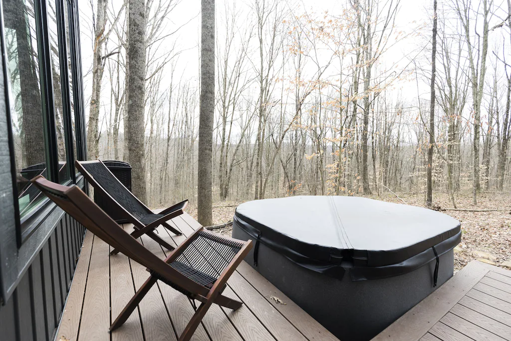A modern cabin expertly designed by talented interior decorators nestled between the trees in a private woods? Definitely worth a stay! But aside from its charming design, it has more in store for friends and families looking to unwind, relax, and just enjoy nature and appreciate the beauty of the wilderness. This cabin also offers a relaxing hot tub, fire pit, spacious rooms, and a myriad of activities that you won’t ever get bored!