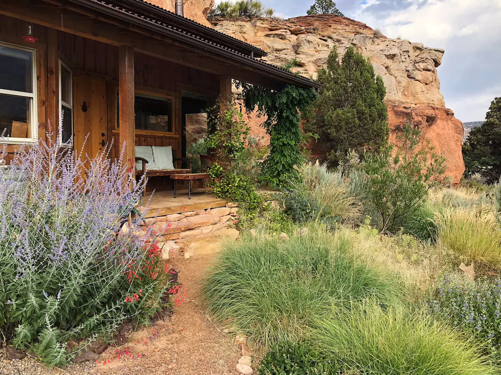 In addition to being built into sandstone rock, the Cliff House is landscaped with native species that bloom all summer. Around the corner from the house, in another private rock alcove, is a little lawn. Enjoy comfortable porch seating with a stunning view.