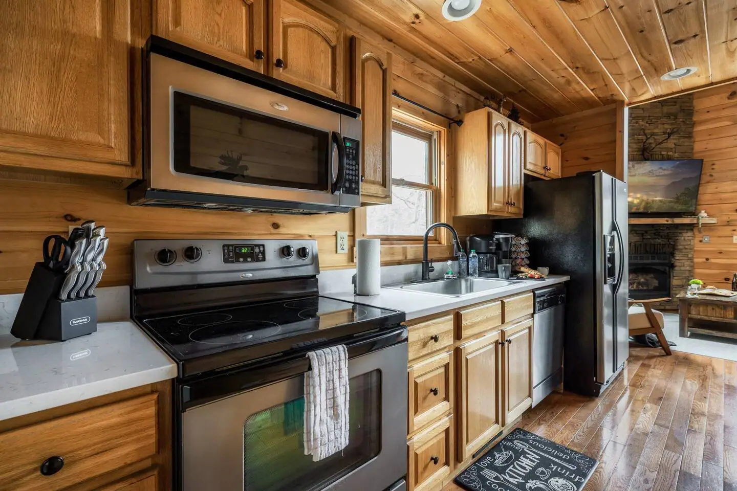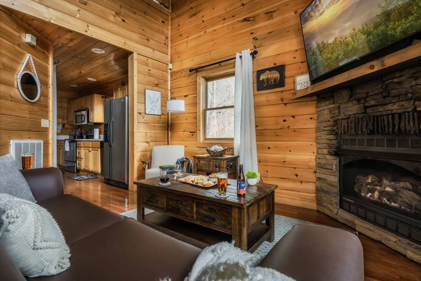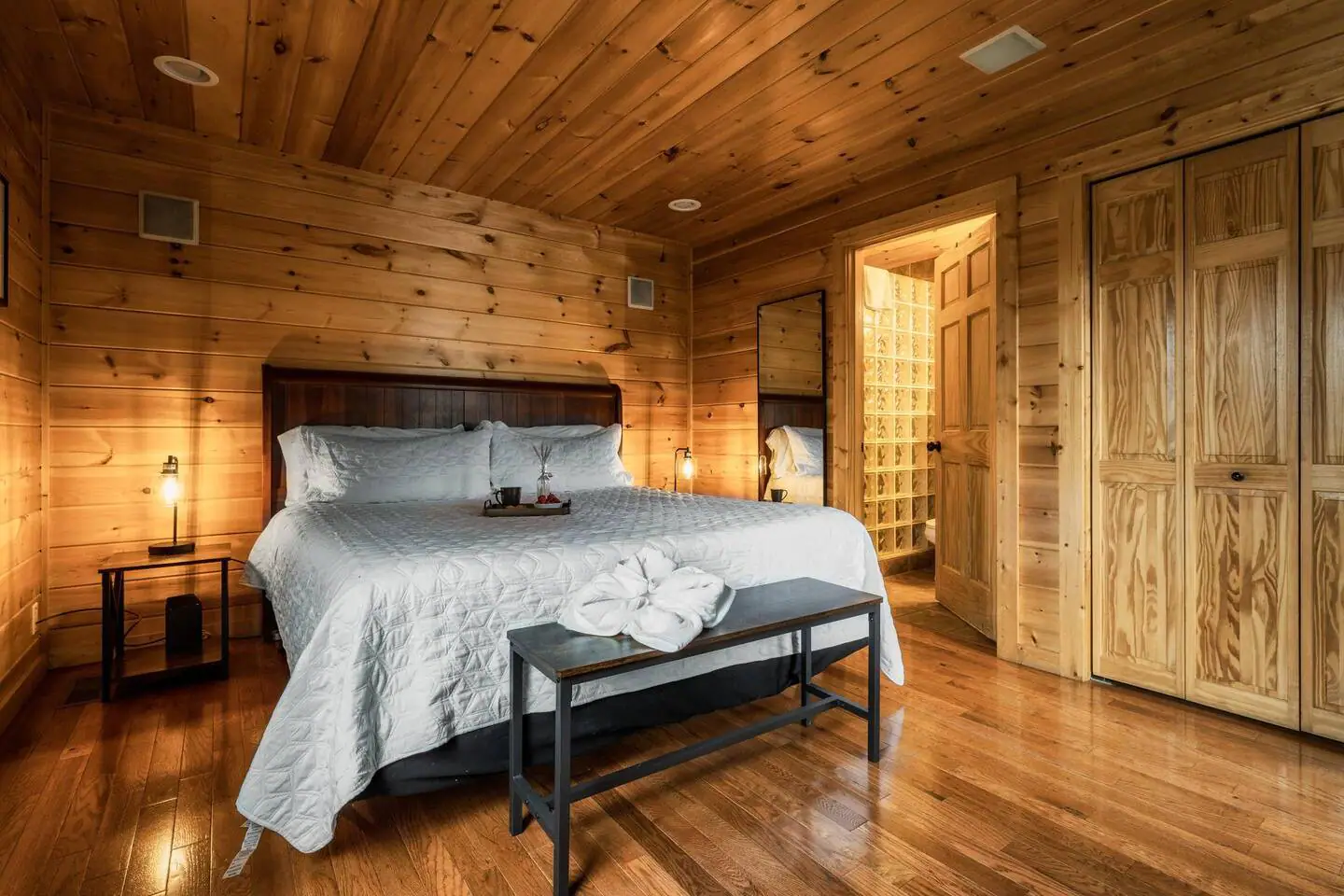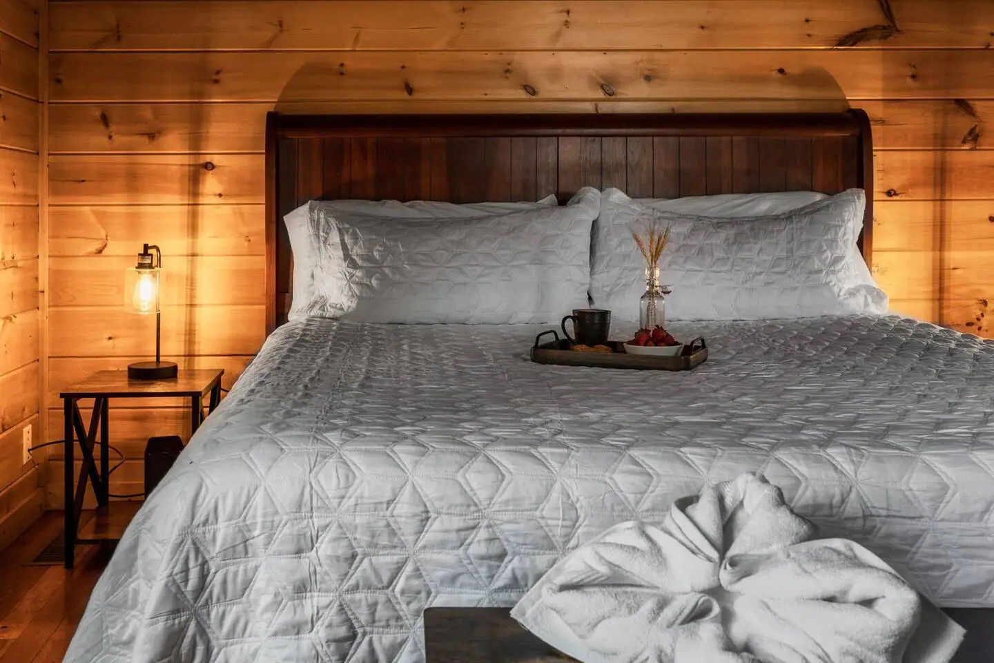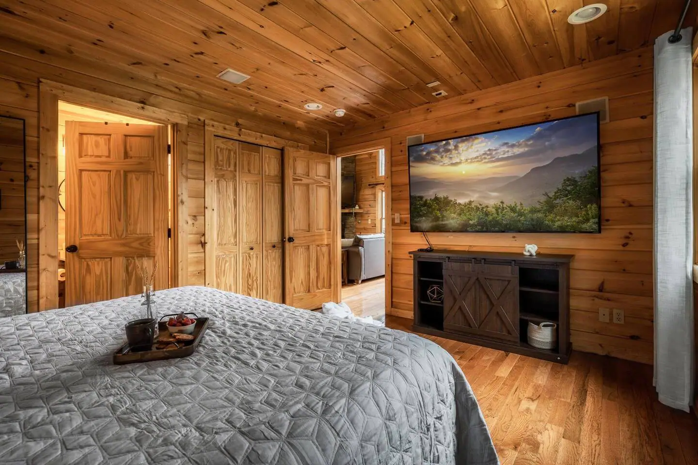 The Pearly Gates cabin is best for couples, and aside from the majestic views from its deck, it also offers luxurious amenities, like a gorgeous hot tub, a lovely electric fireplace, plush linens, and a wonderful wet bar!