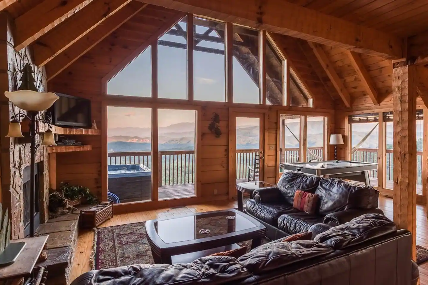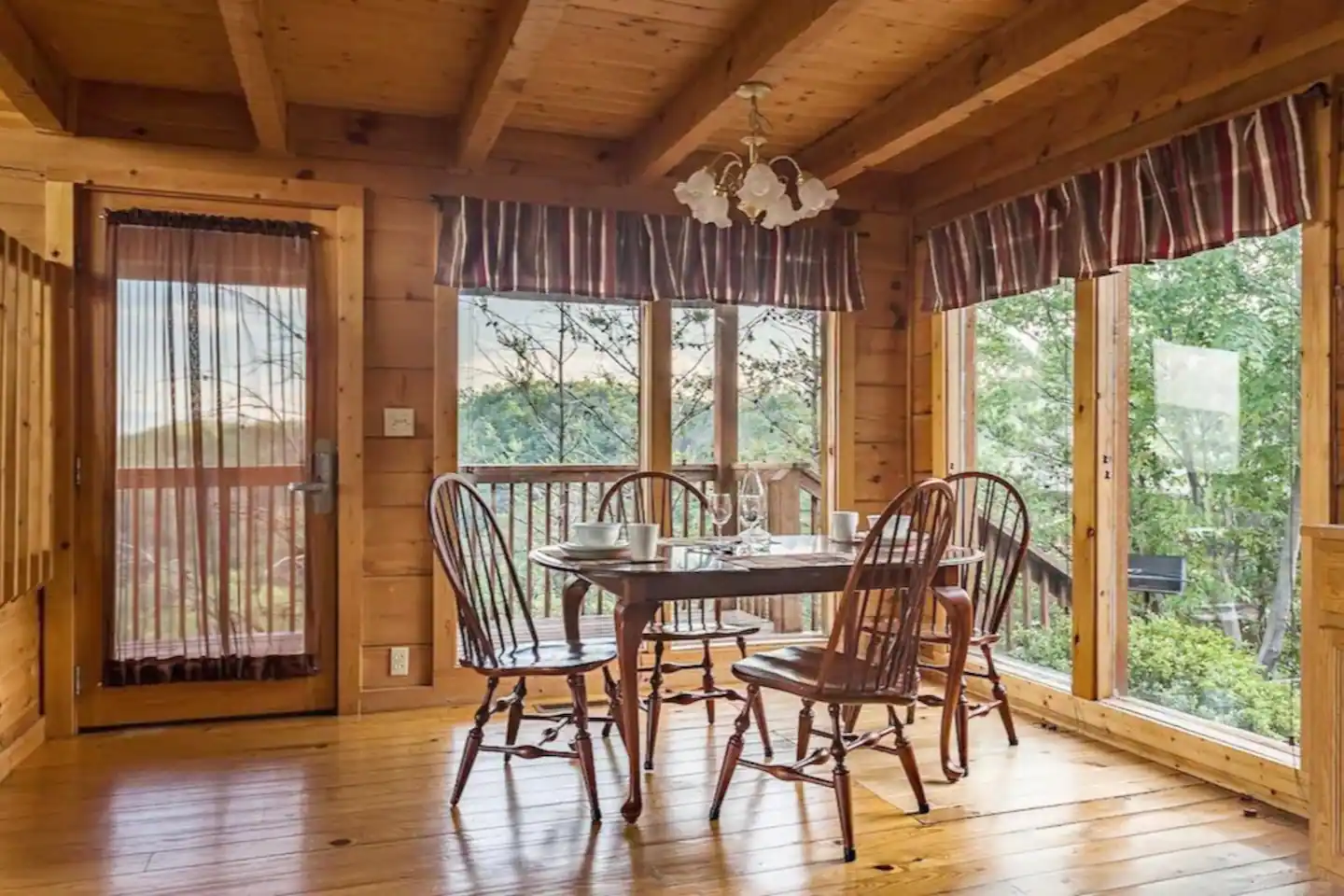 Airbnb cabins – You don’t need an eagle’s view to take in the majestic sights that this rental property has to offer. The fittingly named Eagle’s View cabin sits atop the Bluff Mountain and it offers 180 panoramic view of the stunning nature around you.