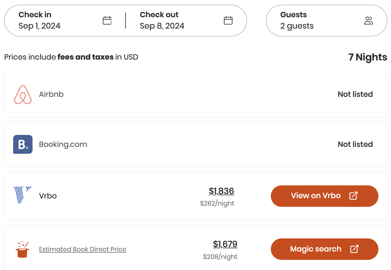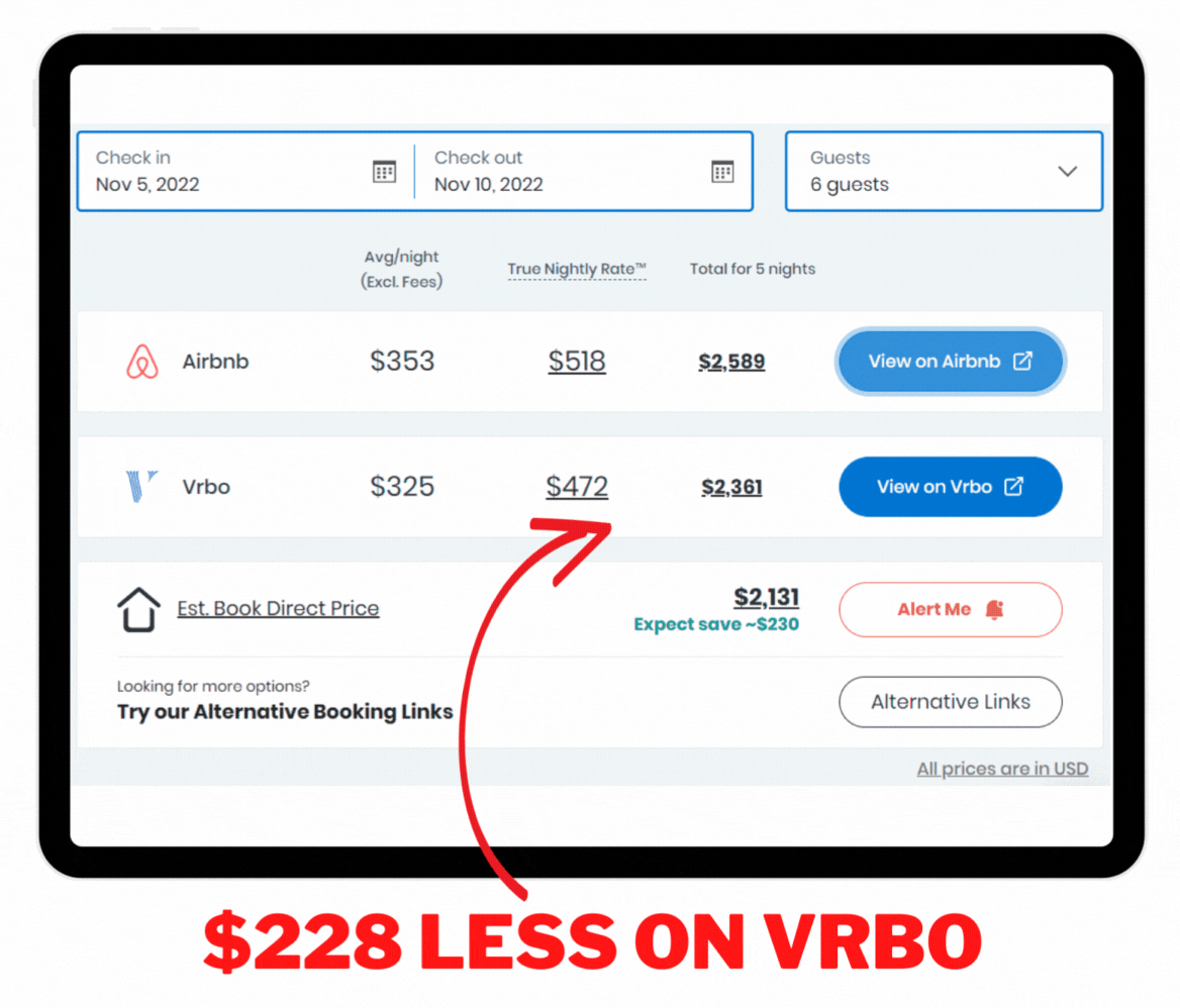 As you can see from the screenshot, if I book on Vrbo I can save $130