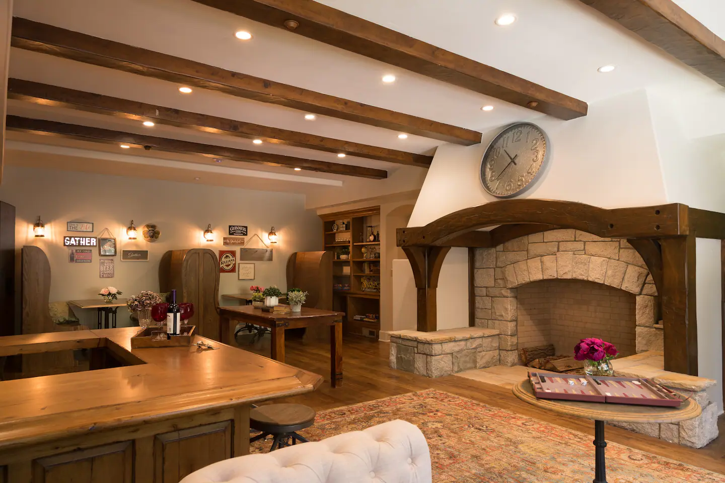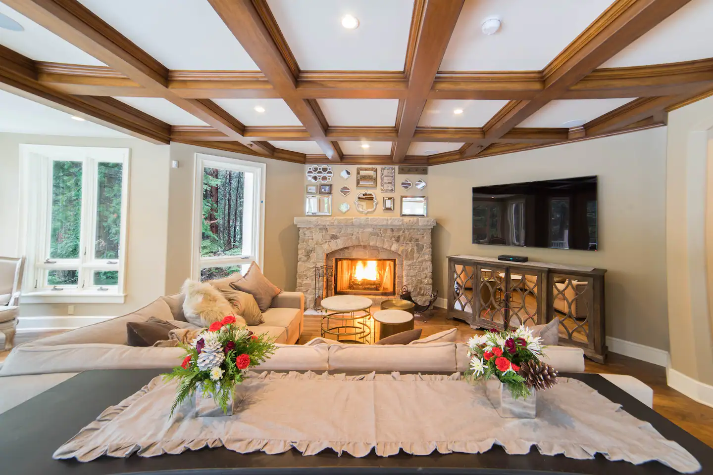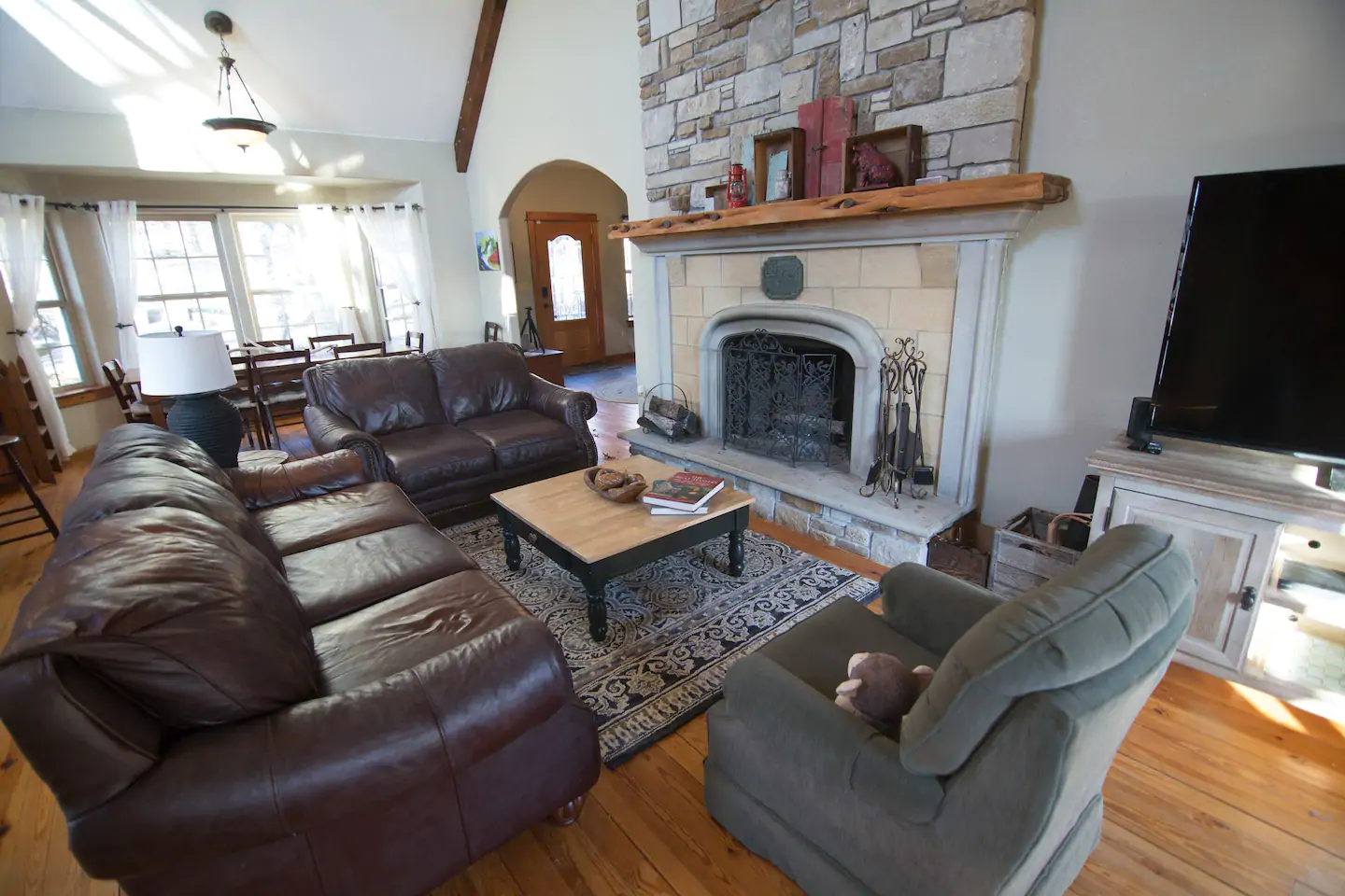 Original paintings, photography, and sculptures keep things fresher than the hot cup of Keurig© brewed coffee you can enjoy curled up by the huge fireplace. We stock the bathrooms with Downy© ultra plush toilet paper for your wiping pleasure and guarantee you’ll sleep well on our premium Tuft & Needle© Mattresses. Watch a BluRay on one of the 65″ flatscreens or grab a board game for some quality family fun before roasting S’mores on the outdoor fire pit.