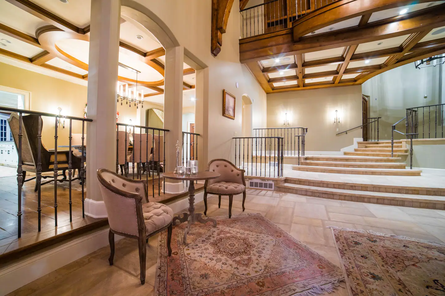After dinner, relax near our giant three-story stone Victorian’esque fireplace, while you’re drinking a glass of our paired favorite domestic or imported wine. Smithmore, a grand estate, receives hundreds of guests annually from around the world. Guests can tour areas including Spanish Lounge, Courtyard, and Royal Dining Room which accommodates your private dinner party.