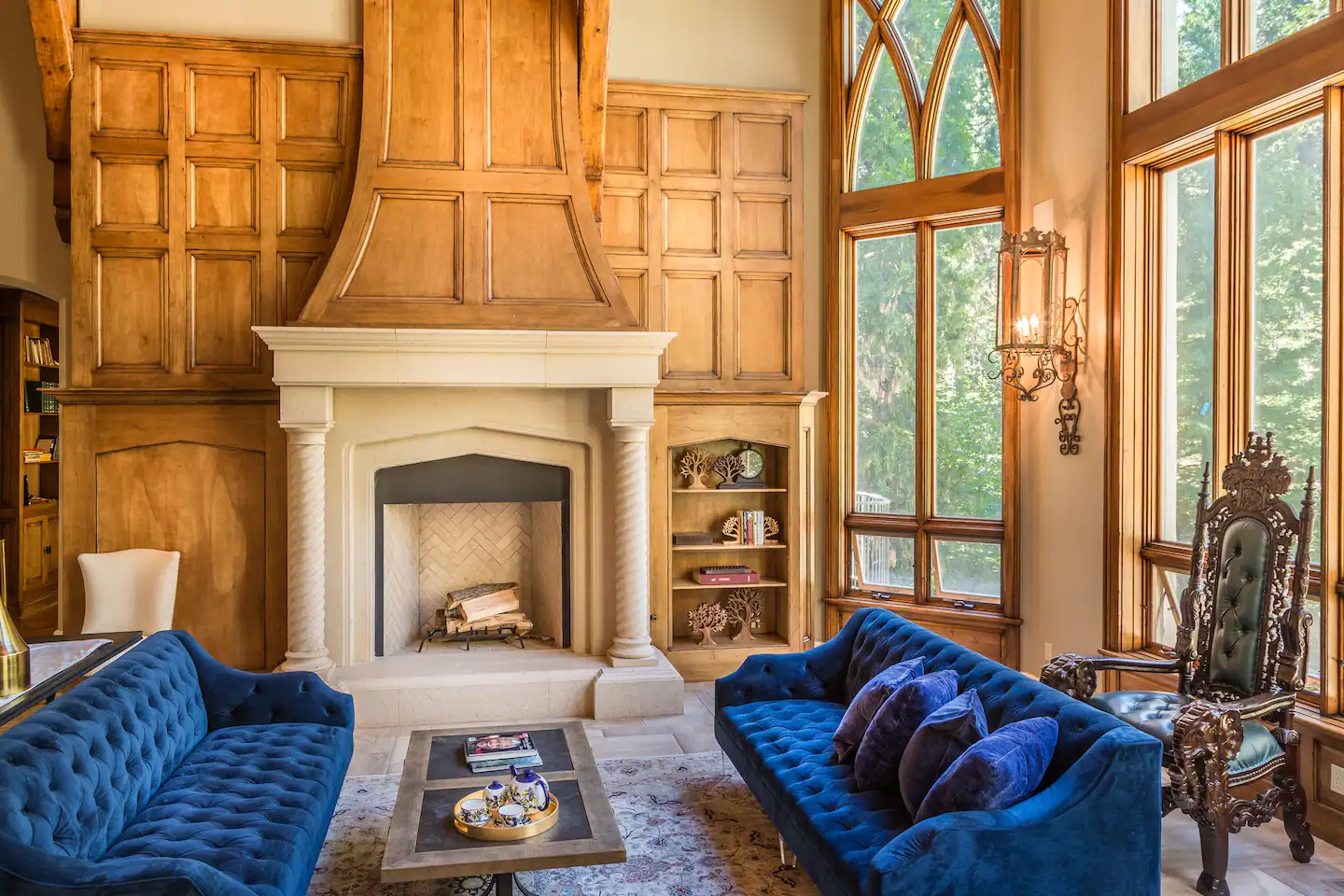 From the moment you descend its driveway – you and your guests will be enveloped in this magnificent private estate. Once inside the castle, you will marvel at its cathedral ceilings, glittering chandeliers, fireplaces, floor-to-ceiling windows (with forest views), and custom-made, gothic architectural features.