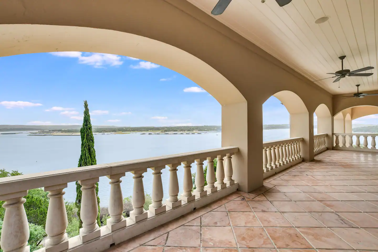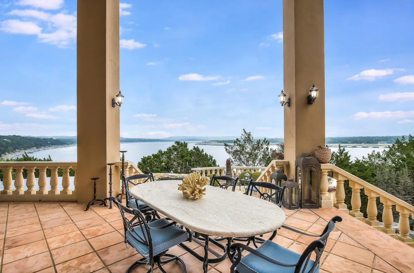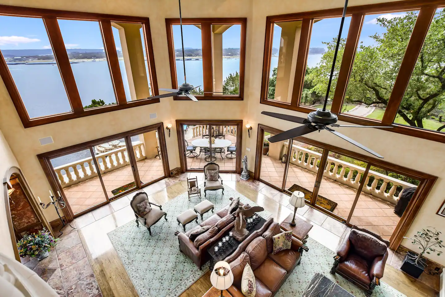 Welcome to a real-life fairy tale! This Old World style Castle Estate has an elegant living room that is open and spacious. The nearby kitchen has a copper-topped island, gourmet appliances, and a breakfast bar. The negative edge pool and patios all face the fabulous 180-degree lake view. Walk across to the 2nd-floor game room with pool table, foosball, shuffleboard, and built-in bar.