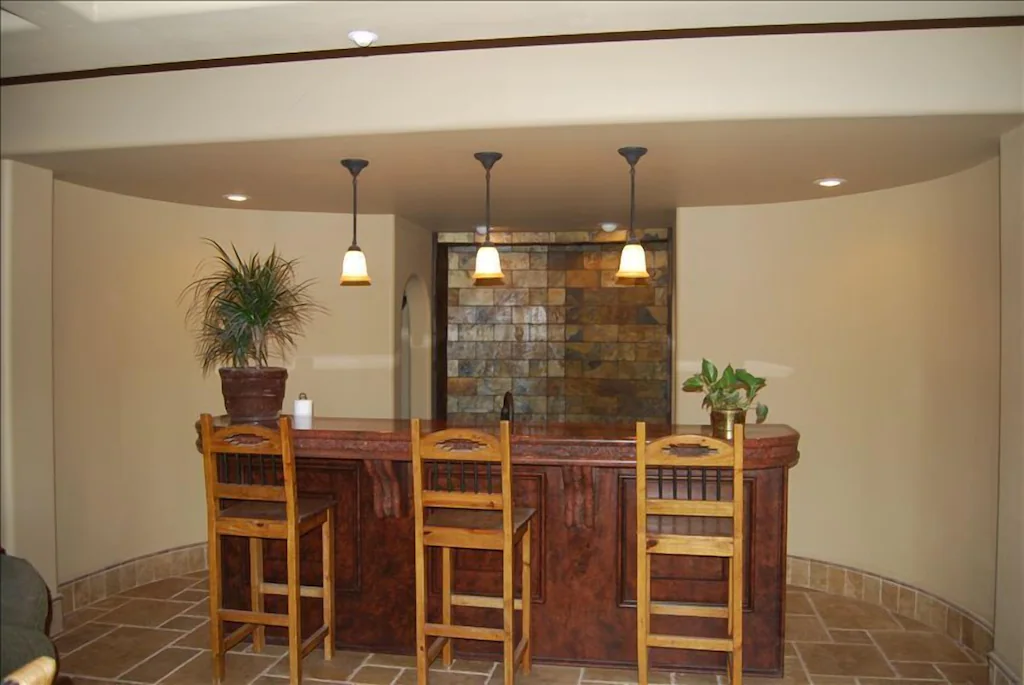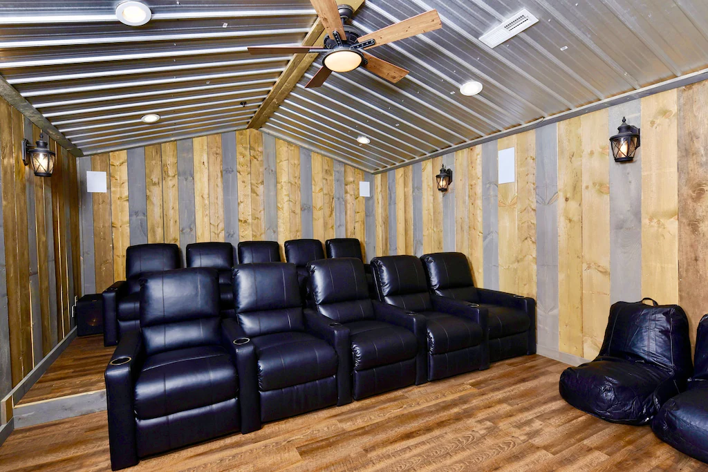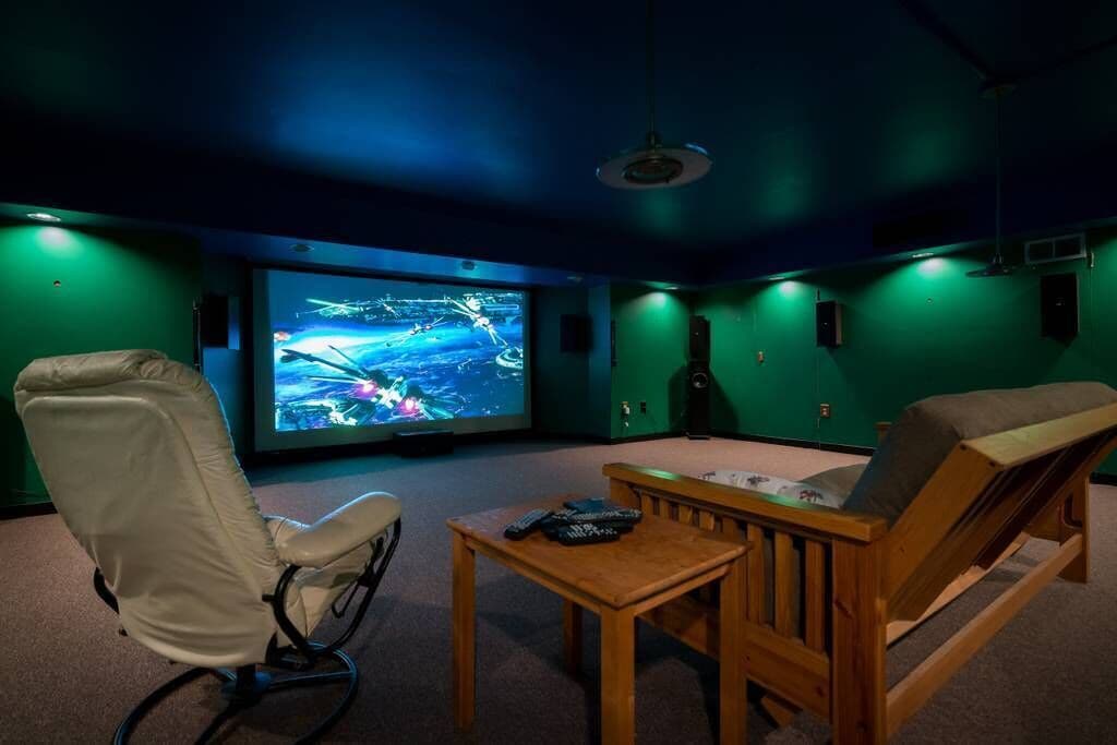 Game room in basement and on the top floor kept younger kids entertained for hours. The men loved the theater room and it’s big TV for all the football games going on during our stay.