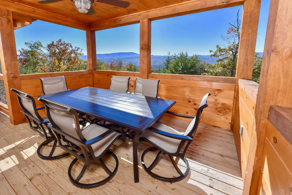 Looking for a more laid-back environment? This cabin also offers your very own large hot tub and a resort-style gas fire pit Rock your cares away in the cabin’s many rocking chairs. Each morning, you can awake to incredible mountain views that leave no doubt why they are called the Smoky Mountains.