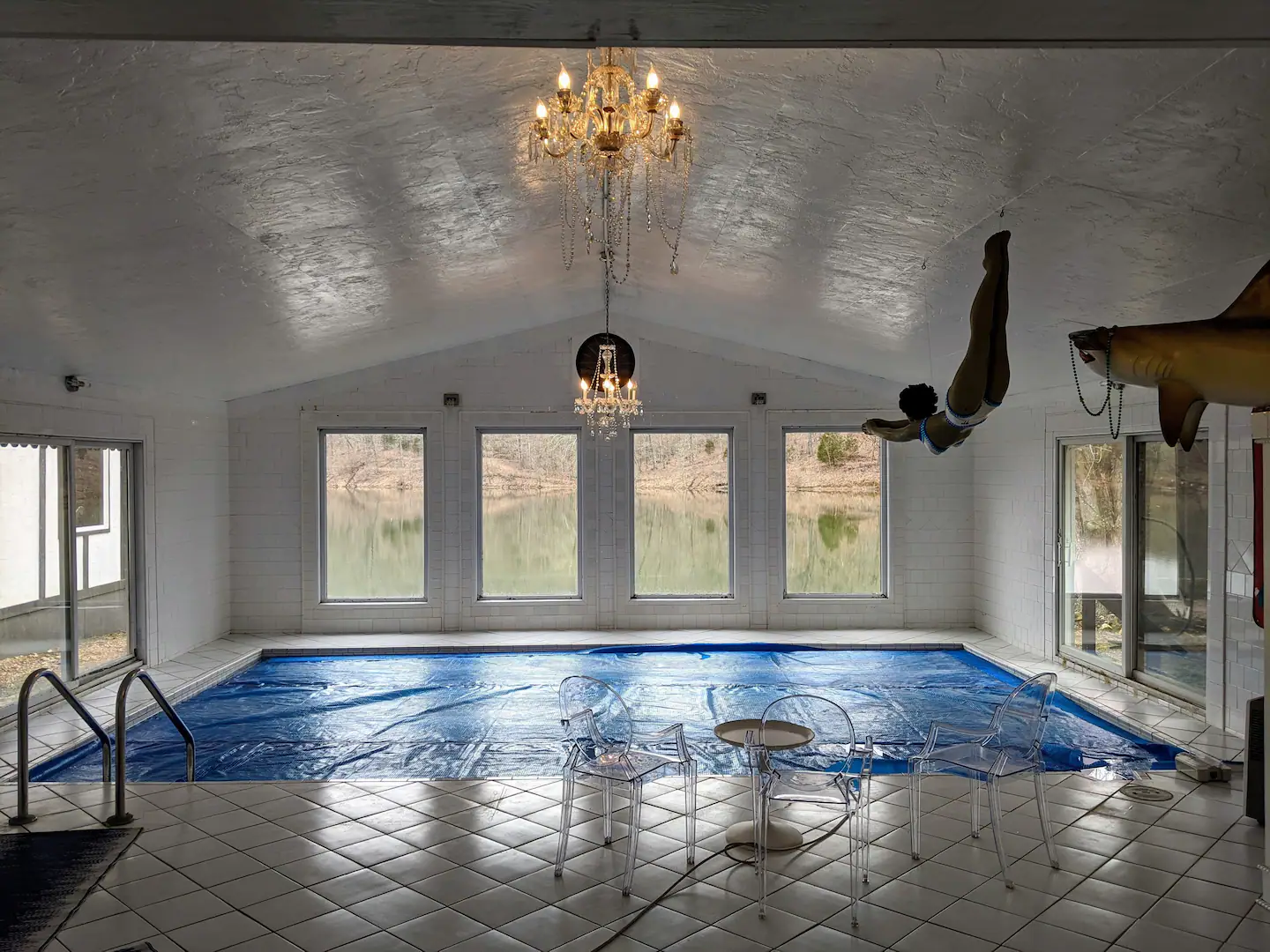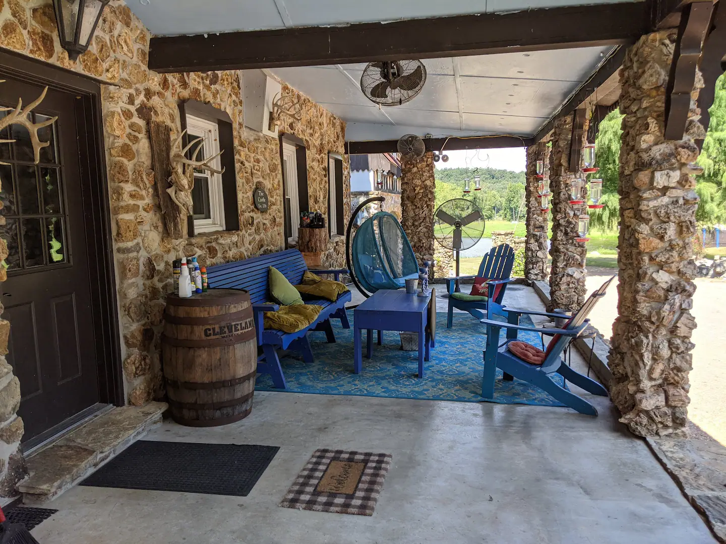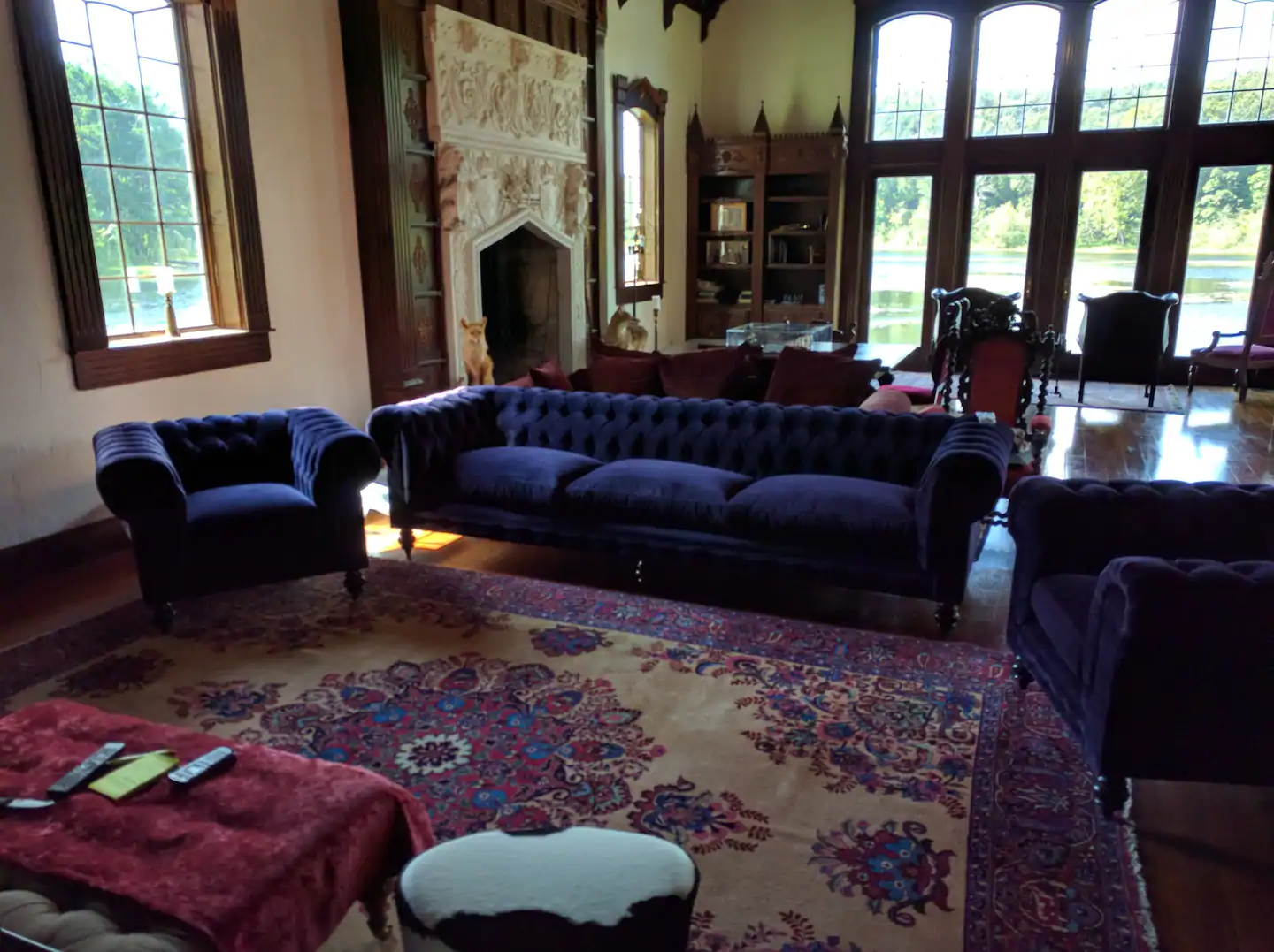 It is a kitschy Castle with a turret and lots of Old World charm. It is set on 100 secluded acres, including fields, woods, hiking, a waterfall, and a 20-acre private lake. We have lots of hummingbirds (in season) on our front porch every morning and evening. There is an aviary with peacocks and free-range guineas and ducks.