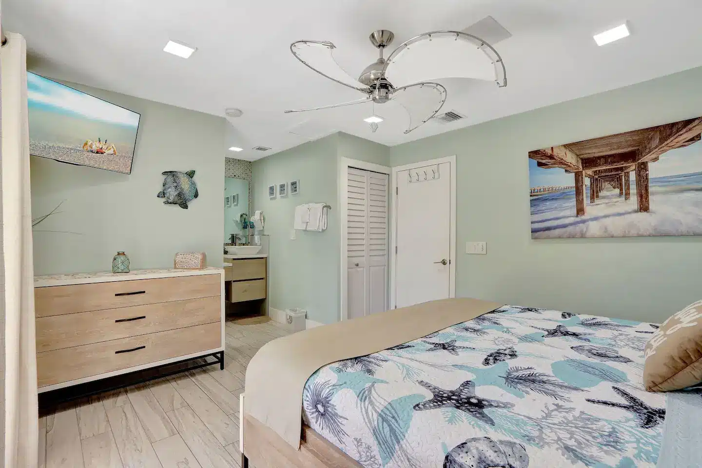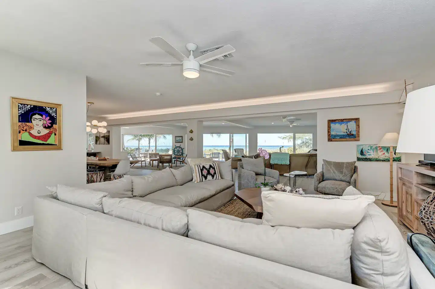 Here, every detail is curated for the gram and beyond. From the moment you step in, the ocean takes center stage through expansive windows, setting the scene for an unforgettable stay. The living room’s latest upgrade welcomes you with cozy yet chic furnishings, perfect for diving into vacation mode.