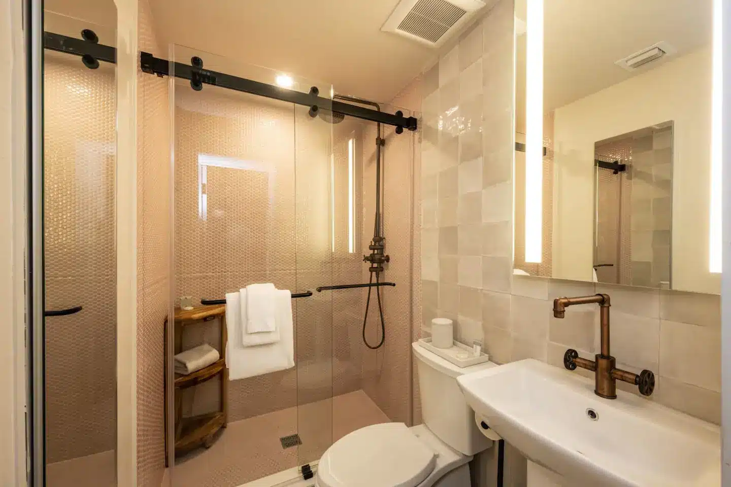 Step outside, and bam, you’re in the mix of it all – food, tunes, the paradise vibes. But step back inside and you’ve got yourself a lush hideout where you’ll forget the world outside with its serene and chill ambiance. This place has got the works. We’re talking about a private pool that’s heated (because why not?), wrapped in a tropical hug of greenery so lush, you’ll forget you’re a stone’s throw from the action. Inside, it’s all about space and grace.