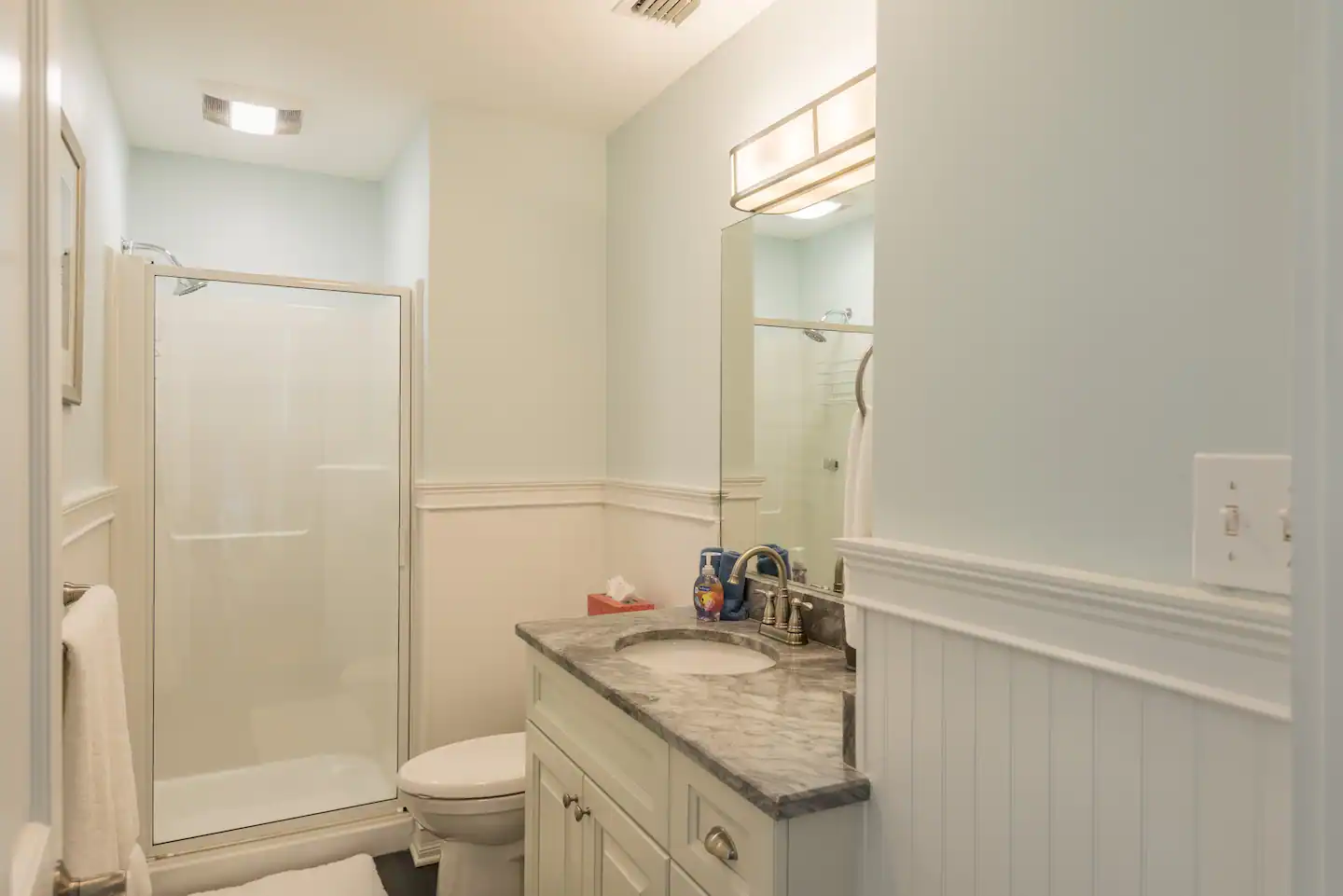 There are 4 spacious bedrooms with 4 ensuite baths. Located on the first floor are two of the bedrooms, one with a king bed and the other with two twin beds. This sleeping area would be ideal for a young family or older family members. Two additional bedrooms are located on the second floor, one with a king bed and the other with a queen bed. All bedrooms include TVs and ceiling fans and are brilliantly furnished, such that you may not want to leave your room. There is also a convenient half bath on the first floor.